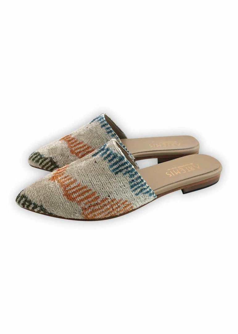 - Upper in 100% silk velvet, hand-loomed by a women’s collective in Uzbekistan.