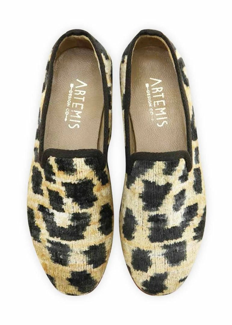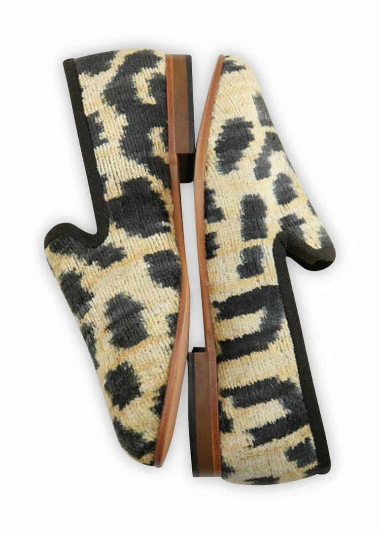 This style has the same cut and shape as our Women’s Kilim Smoking Shoe–a favorite Artemis style that fits most foot widths comfortably. We especially love it in this classic, seasonless leopard pattern!