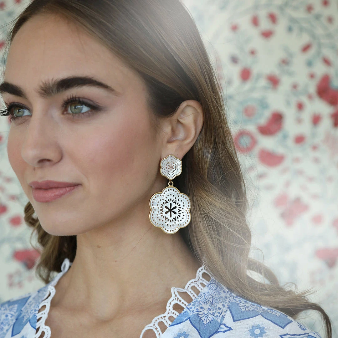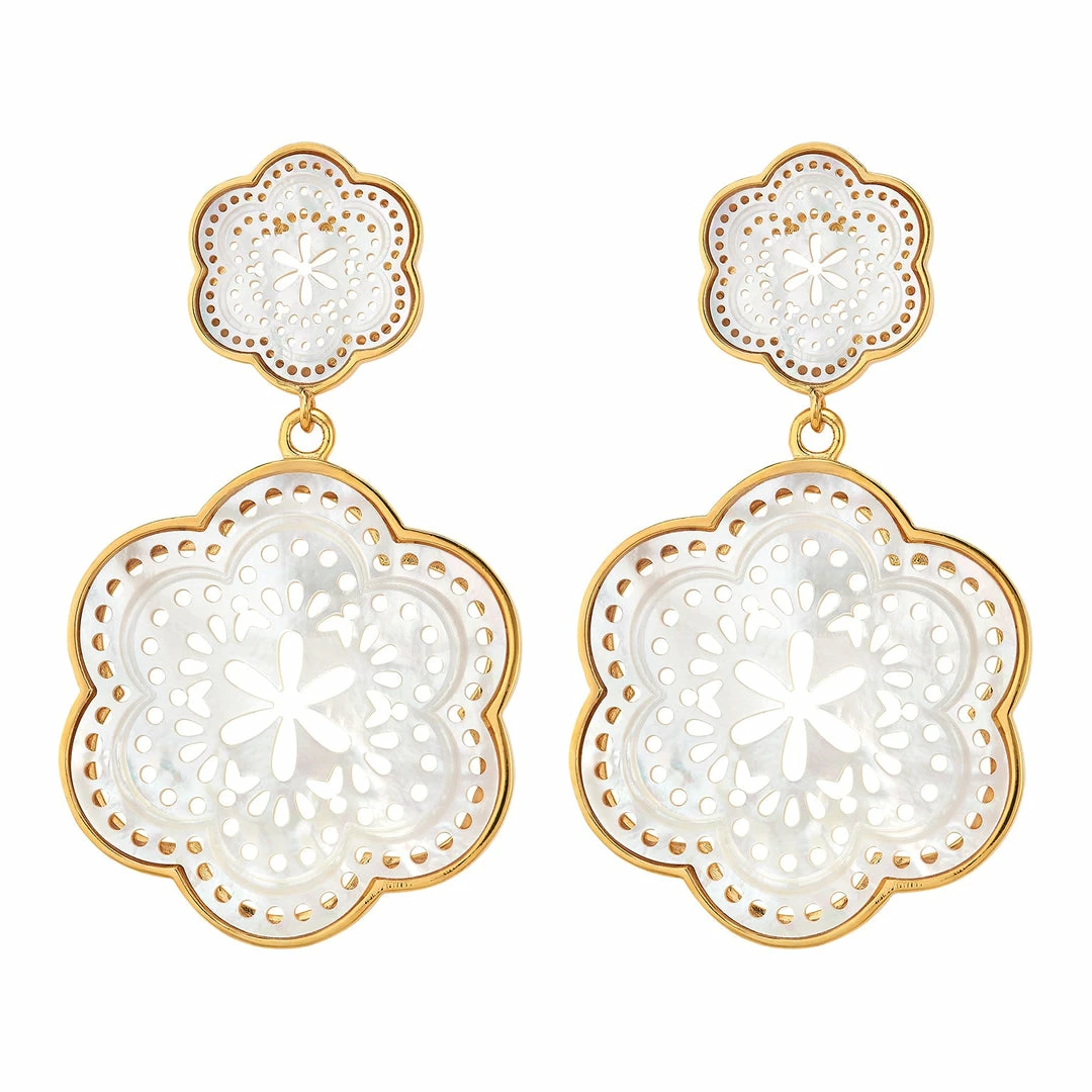 Our latest oversized Tamarin drop earring in mother of pearl with 14k vermeil.