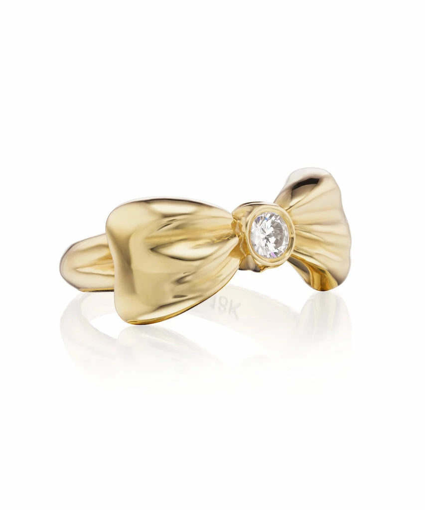 Bows signify moments of celebration- they are also feminine and fun! Why not wrap one around your finger? Handcrafted from 18-karat yellow gold, with a brilliant cut diamond, this bow will help you remember a significant moment, or make you fall in love with bows all over again.Â
