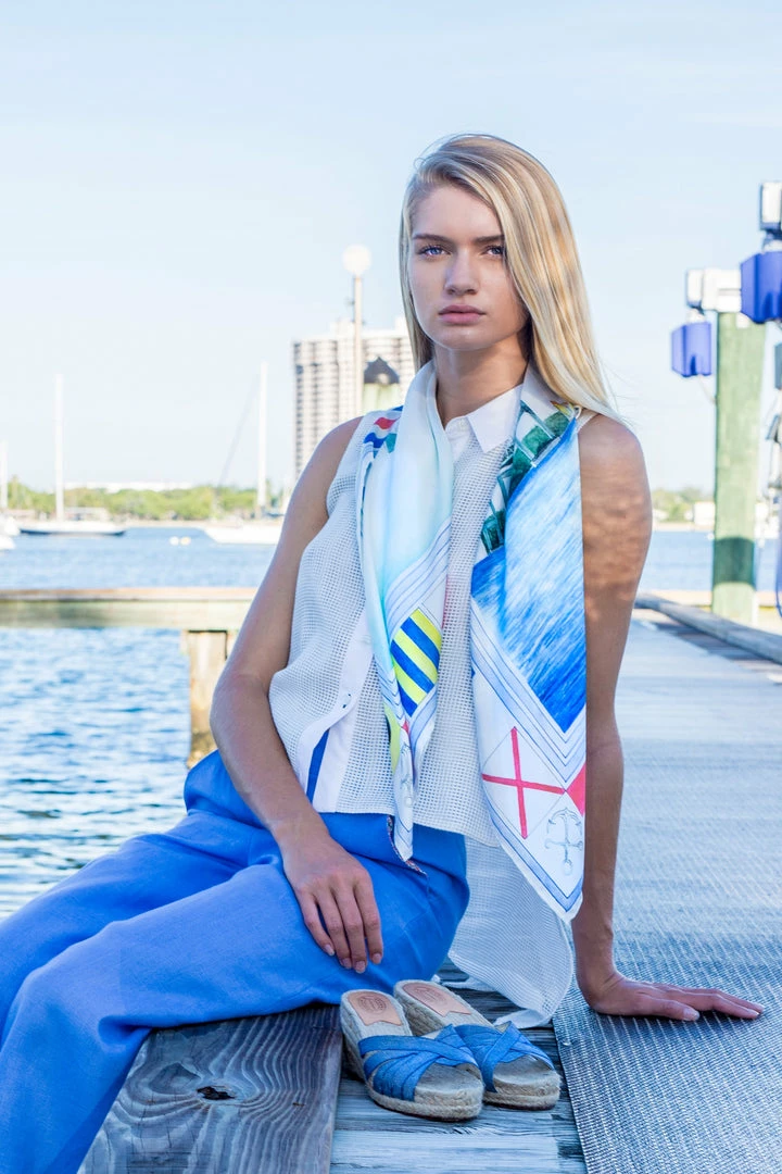 Protect your Banniere Scarf by storing it folded in your traveling blue envelope. Keep it untied and in a dry area. Dry clean when needed.