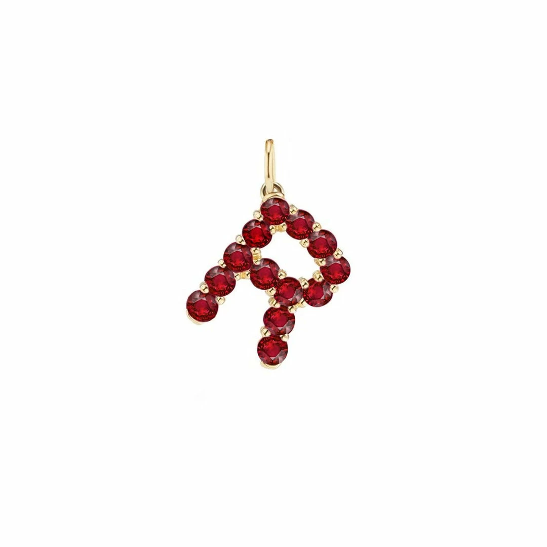 A pendant featuring the initial of your choice comprised of round Ruby Gemstones in a delicate 18k gold mounting with smooth beaded back.