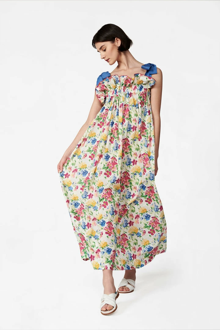 Free-flowing and feminine, our top-selling Jaime dress will fast become your favorite frock. Luxurious, lightweight cotton from Liberty Fabrics, grosgrain straps, and embroidered piping, make it ethereal and elegant—a dress you’ll want to wear day and night.