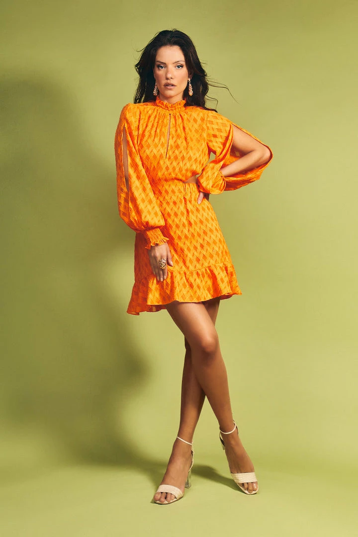 Long sleeve mini dress features a stunning keyhole neckline, airy sleeve slits, an elastic wrist. This dress makes a statement with it’s unique sleeve cut outs and the sexy back cut out.