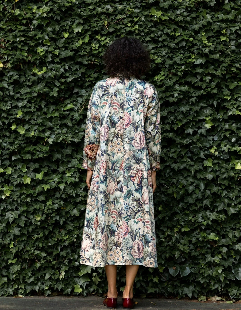 This style borrows certain elements from the boys but as we know, anything they can do, we can do better. The Stella provides a perfect blend of structure and softness and is destined to become your off-duty uniform. Dressed up or dressed down, it’s one of our go-tos.  The romantic floral tapestry print is custom printed on high quality cotton at a storied Italian mill.Â