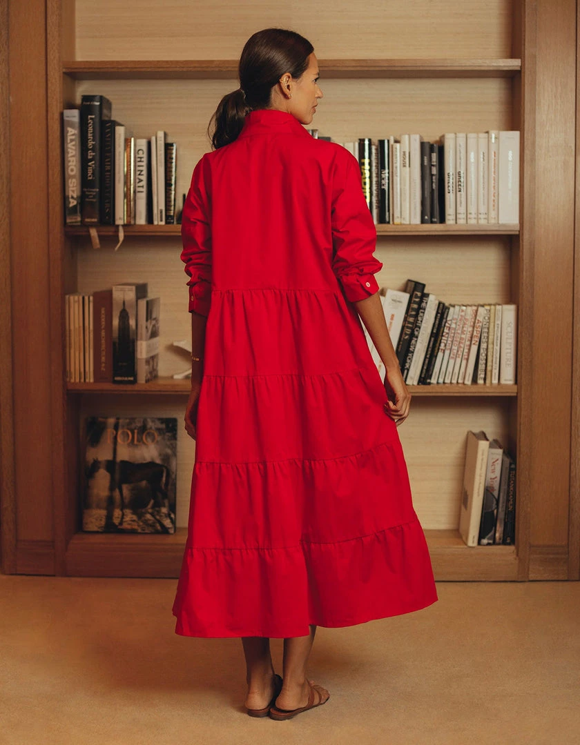 This perennial favorite dress features a universally flattering spread collar, a buttoned placket and a multi-tiered skirt. We love juxtaposition of a classic, heritage print with a bohemian silhouette. The dress is made in Italy using OEKO-TEX certified Italian cotton.