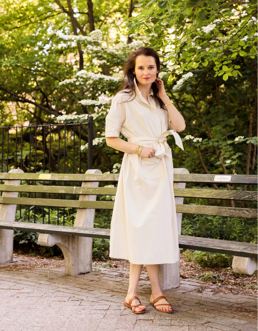 Meet a short sleeve version of our classic housedress with buttons that hit at exactly the right spot. This cream version is in a brushed cotton, making it softer and more flexible than earlier editions. Convenient pockets to hold your essentials. It can be worn belted or unbelted. Like all of our dresses, the cotton is heavyweight which makes wearing a bra optional.
