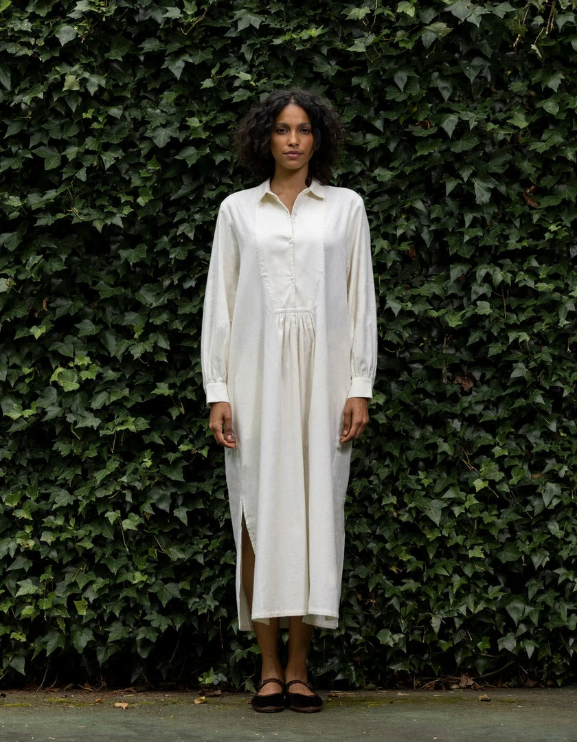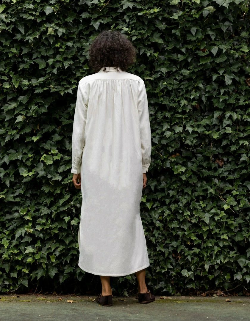 Our new nightdresses are to night as our housedresses are to day. Feel both beautiful and comfortable – no need to compromise. The collared Lulu design is inspired by an 18th century artist’s smock and has exquisite pleating and a flattering silhouette. Look chic and pulled together instantly. The ultra premium Italian flannel is super cozy but has a luxurious hand. Super soft but light years away from your grandma’s flannel nightie.