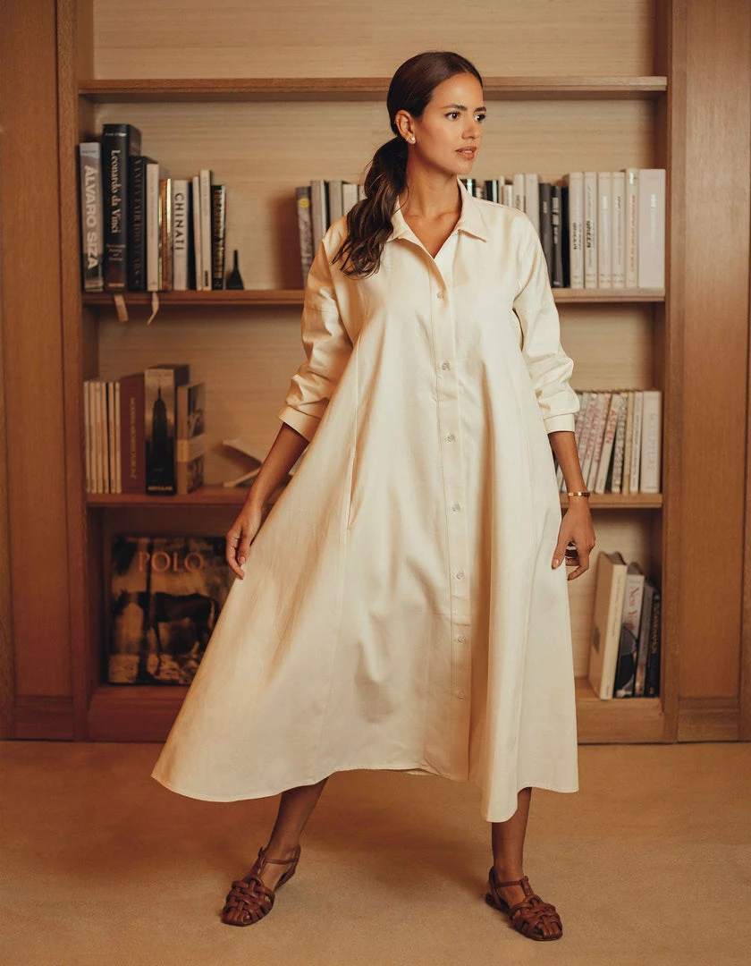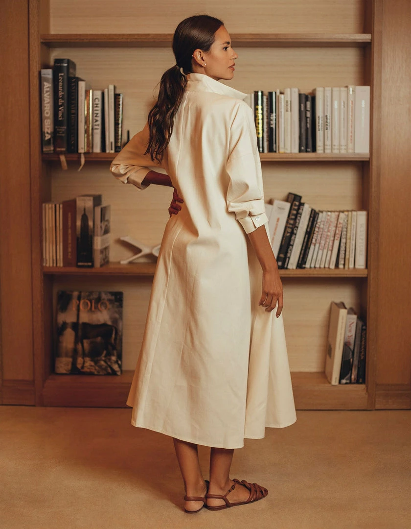 This style borrows certain elements from the boys but as we know, anything they can do, we can do better. The Stella provides a perfect blend of structure and softness and is destined to become your off-duty uniform. Dressed up or dressed down, it’s one of our go-tos. The dress is made in Italy using OEKO-TEX certified Italian cotton.