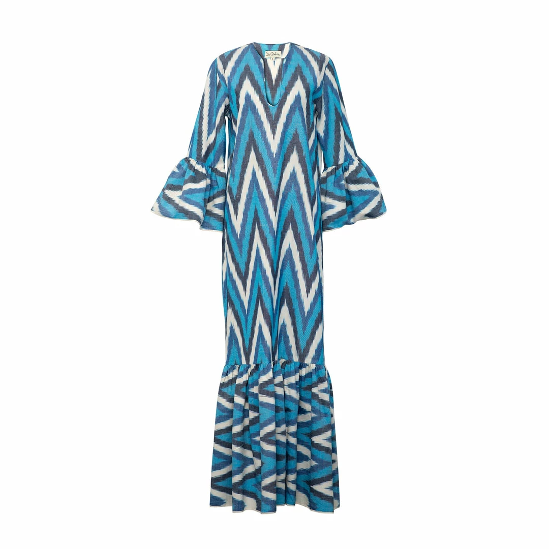 It features a Long hemline and flounce sleeves.