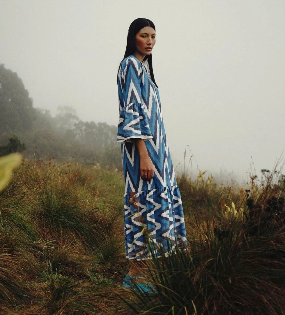 The “Light Blue” tunic dress is crafted from organic cotton, handwoven in the south of India.