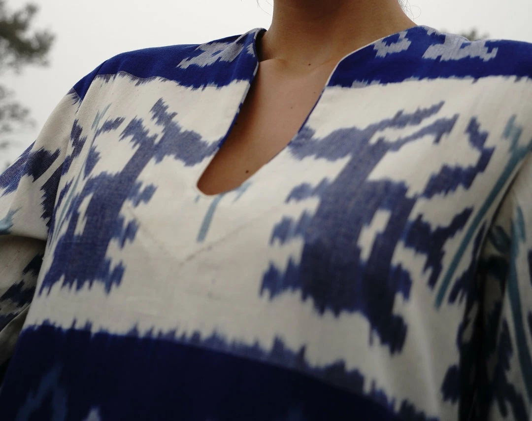 The “Monkey” tunic dress is crafted from organic cotton, handwoven in the south of India.