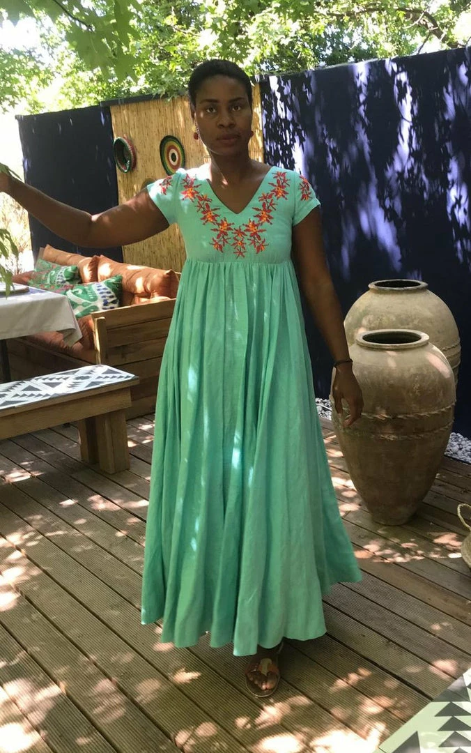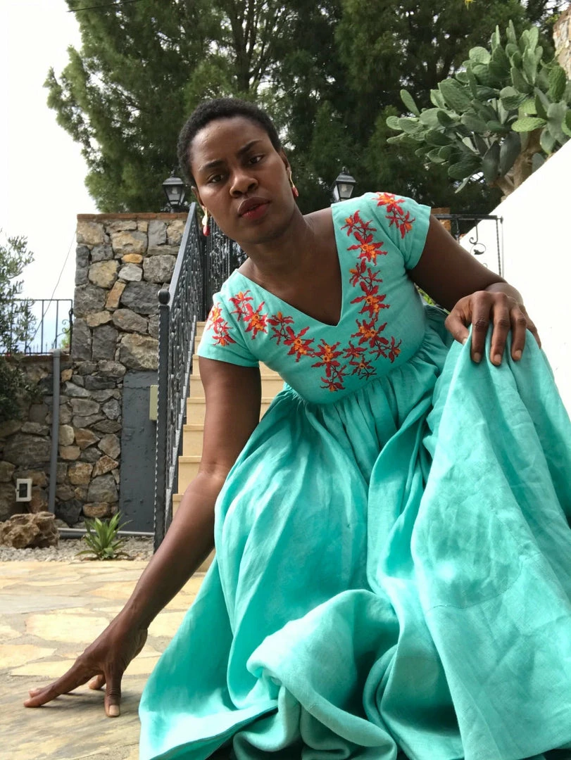 Maxi Linen Dress with Embroidery. 100% Linen.