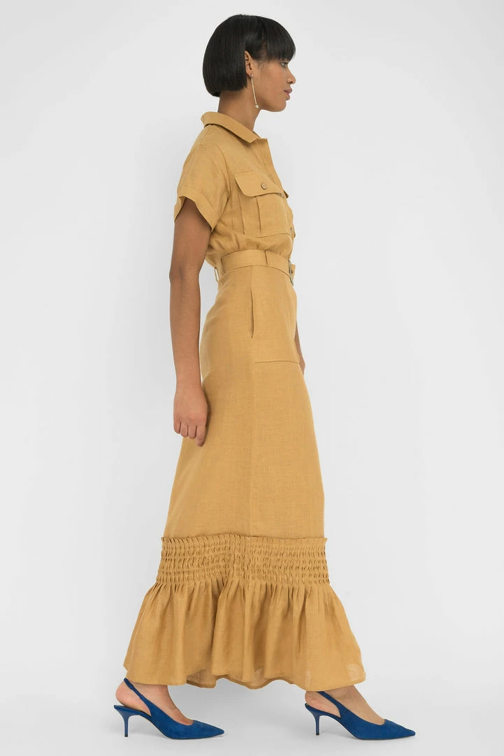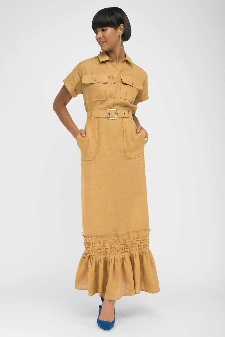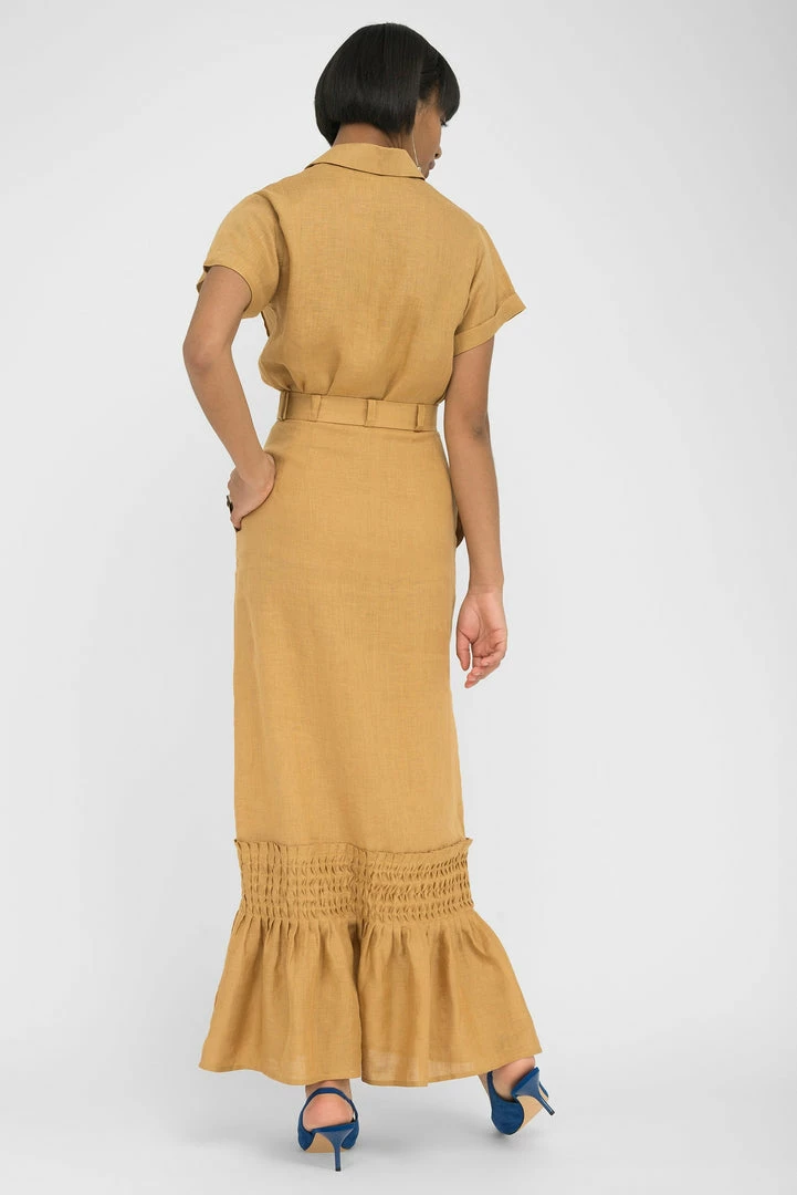 2 Piece Safari Linen Skirt Set with Pockets and Smock Details