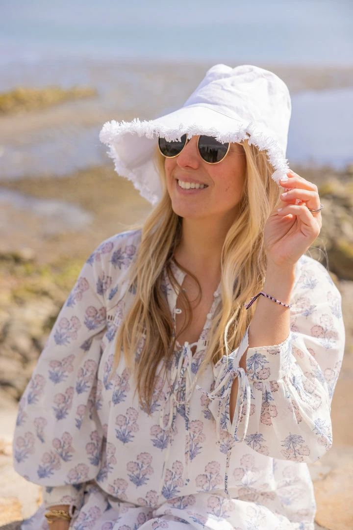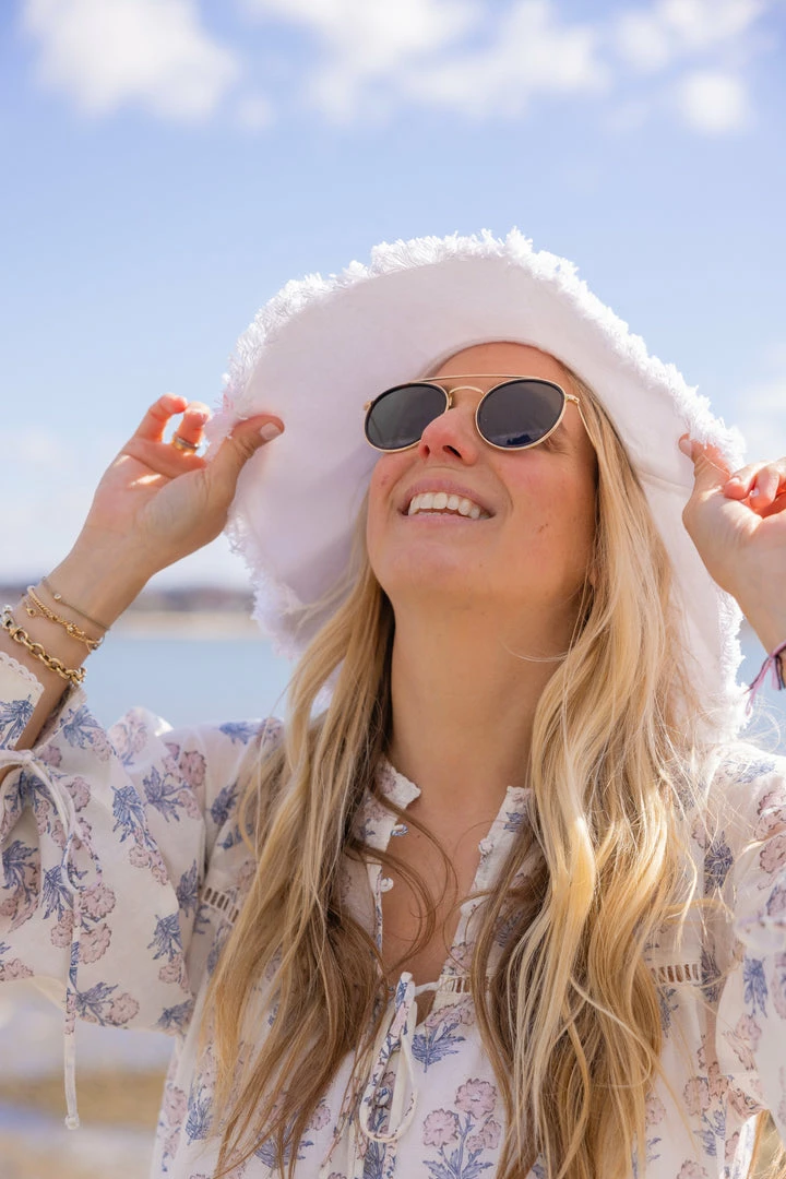 Our canvas hat is both classic and trendy. It has built in SPF protection and easily packable in your luggage! Keep in simple with solid natural and white or choose from our three stripe options: ocean, black and natural.