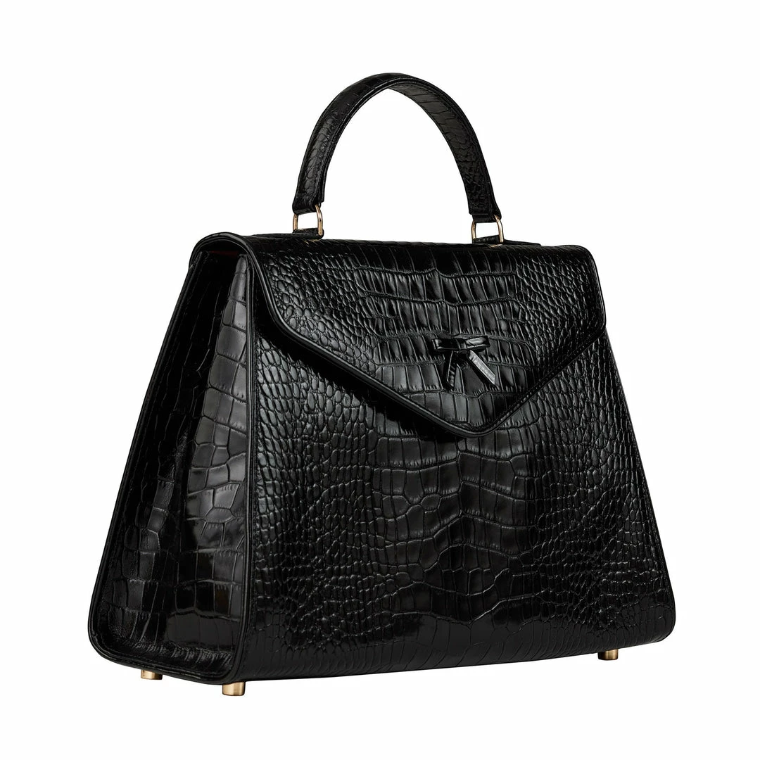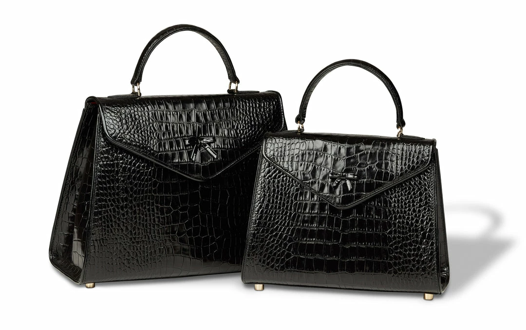 • Black Italian crocodile embossed leather