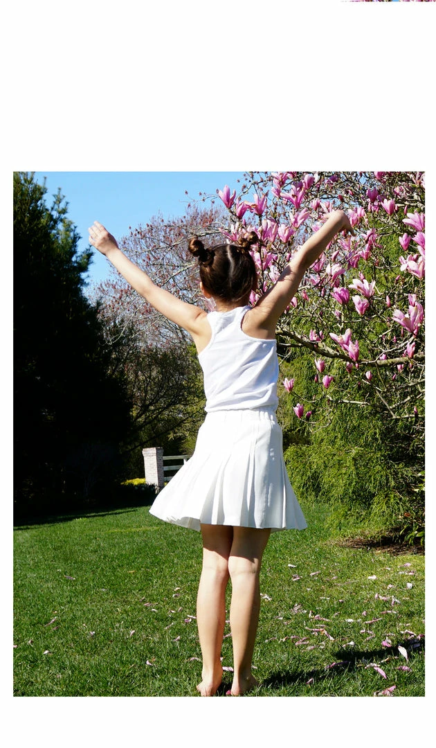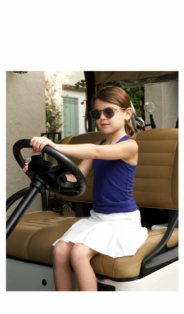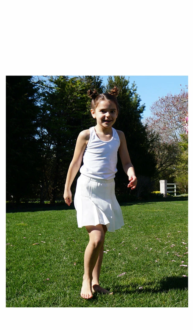 This classic children’s tennis skirt is crafted in our lightweight luxury crepe. Pairs well with the Tilly Tank for tennis or Charlie polo for golf.