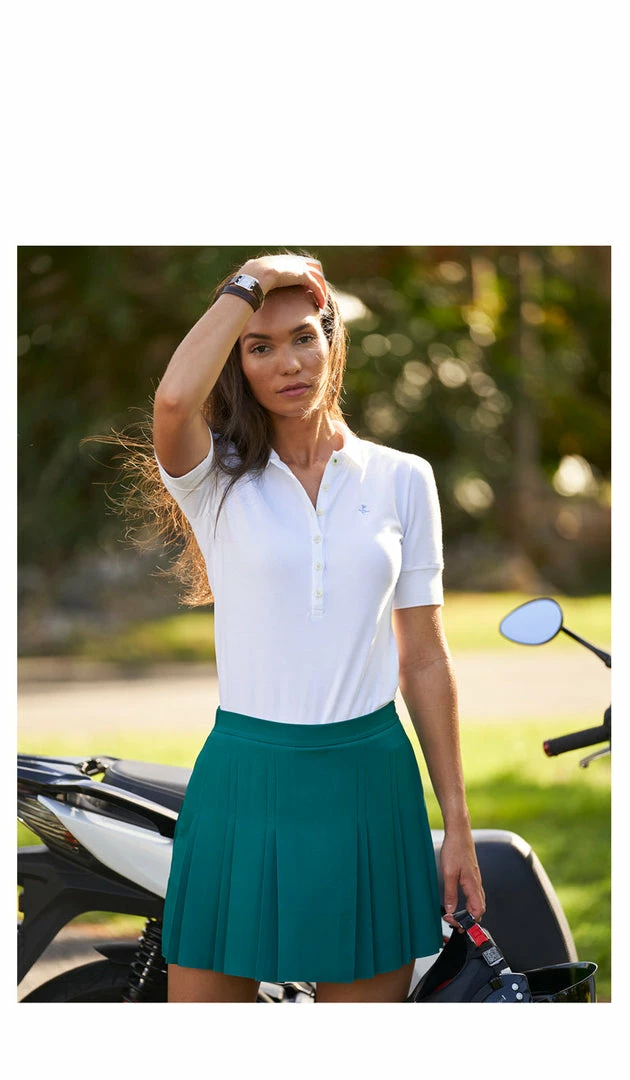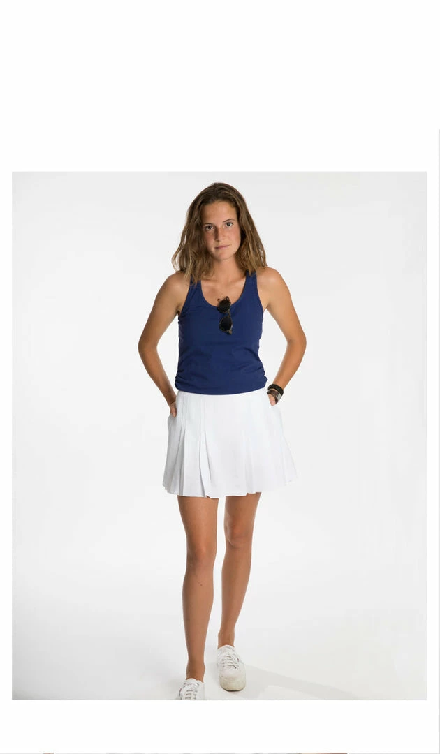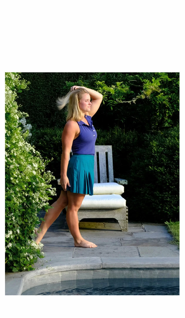 This classic style reminds us of our high school field hockey skirts. Crafted in our lightweight luxury crepe and tidy pleats it is certainly a refined version of the retro skirt with these luxury details and elegant fabric.