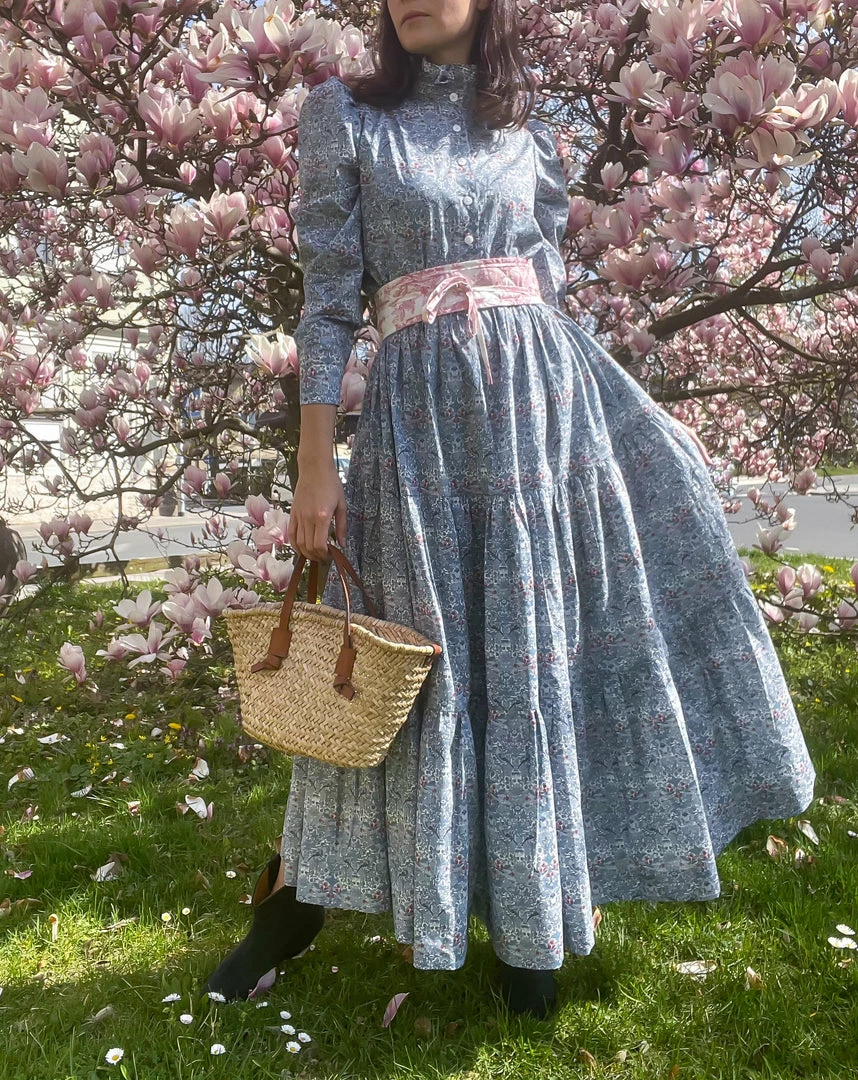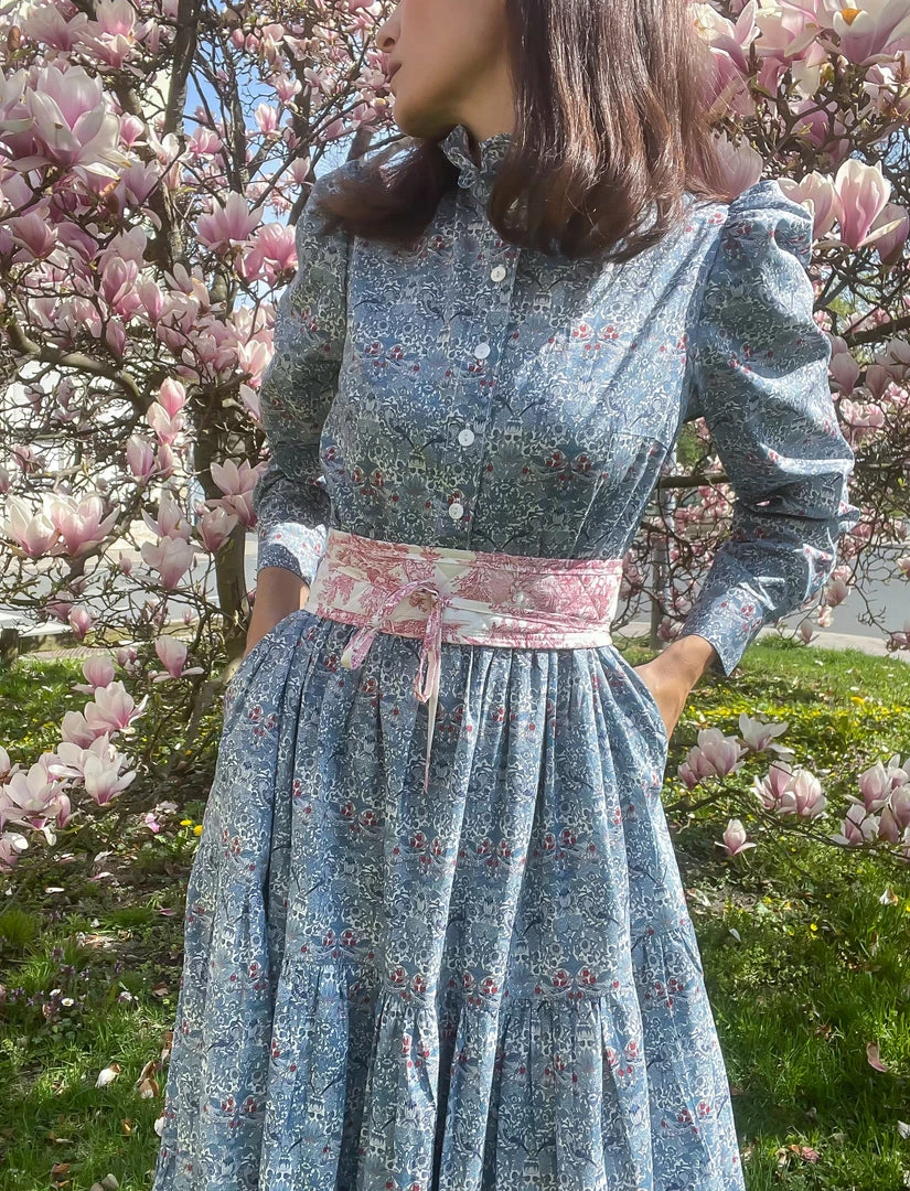 The Matin d’Eté dress is like a early summer morning. When birds are singing and the meadow is still covered with morning haze. Vibrant color made of one of the most famous prints from Liberty London, called “Strawberry Tief”. A romantic and playful shape, one of those dresses you will never take off again. Comfortable and light with two side pockets, puffed sleeves and a little high neck collar. The Matin d’été dress is made of 100% cotton and is 135cm long (true to size, Model is 173cm and is wearing size XS).