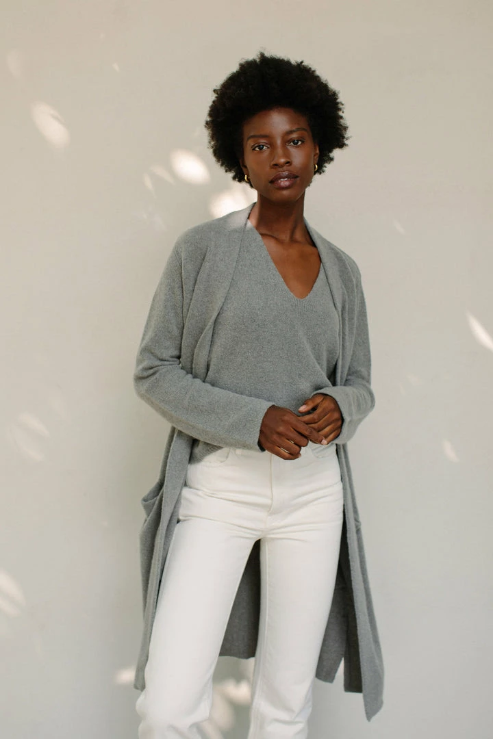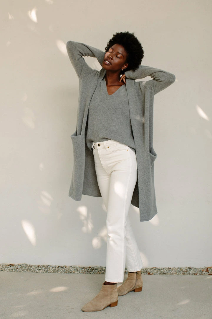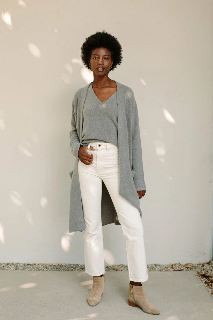 Let’s turn up the cashmere in here. What do you get when you pair our iconic Hannah Duster with it’s matching Tank? A soft, lofty, luxe set with just a bit of stretch (but engineered never to stretch out). It’s the sort of pairing that elicits a lot of “where’d you get that?”