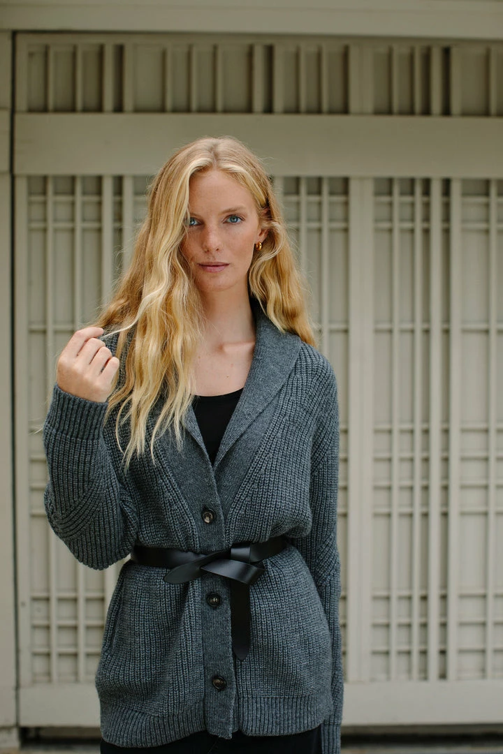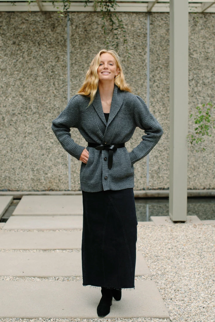 Details on details on details. From a slightly ruched sleeve to a shawl collar to horn buttons, this sweater jacket is ideal for temperate weather (or for layering up). Plus, a blend of baby alpaca and lana merino makes it cozy yet lightweight. Don’t miss the interlocking pointelle details on the sleeves.