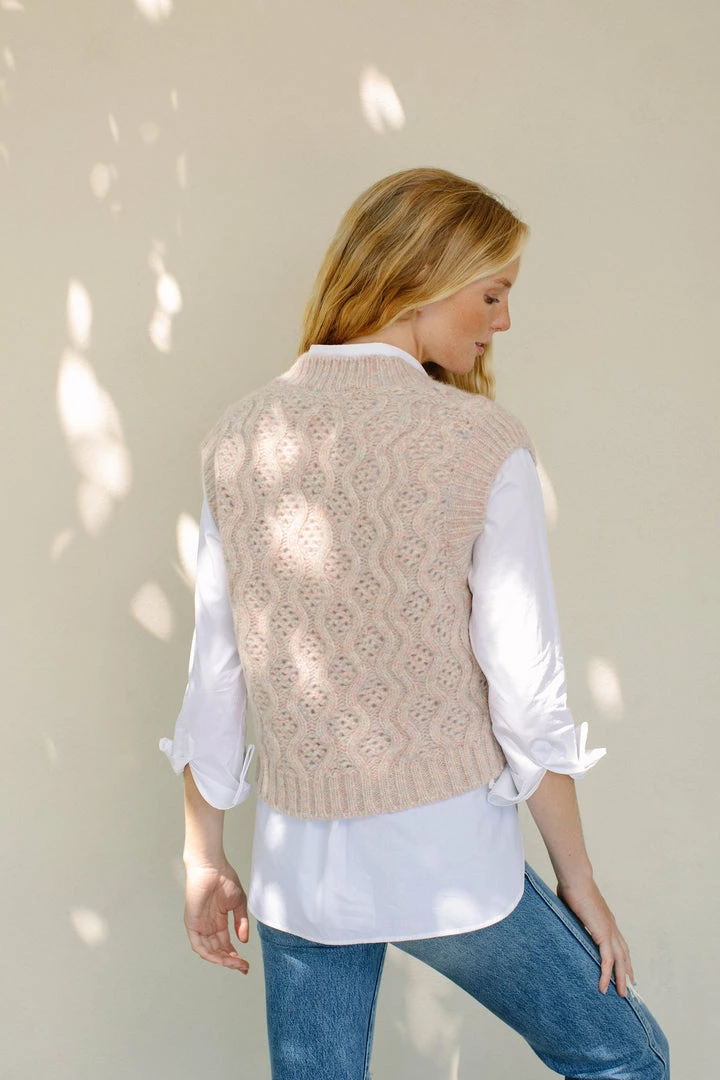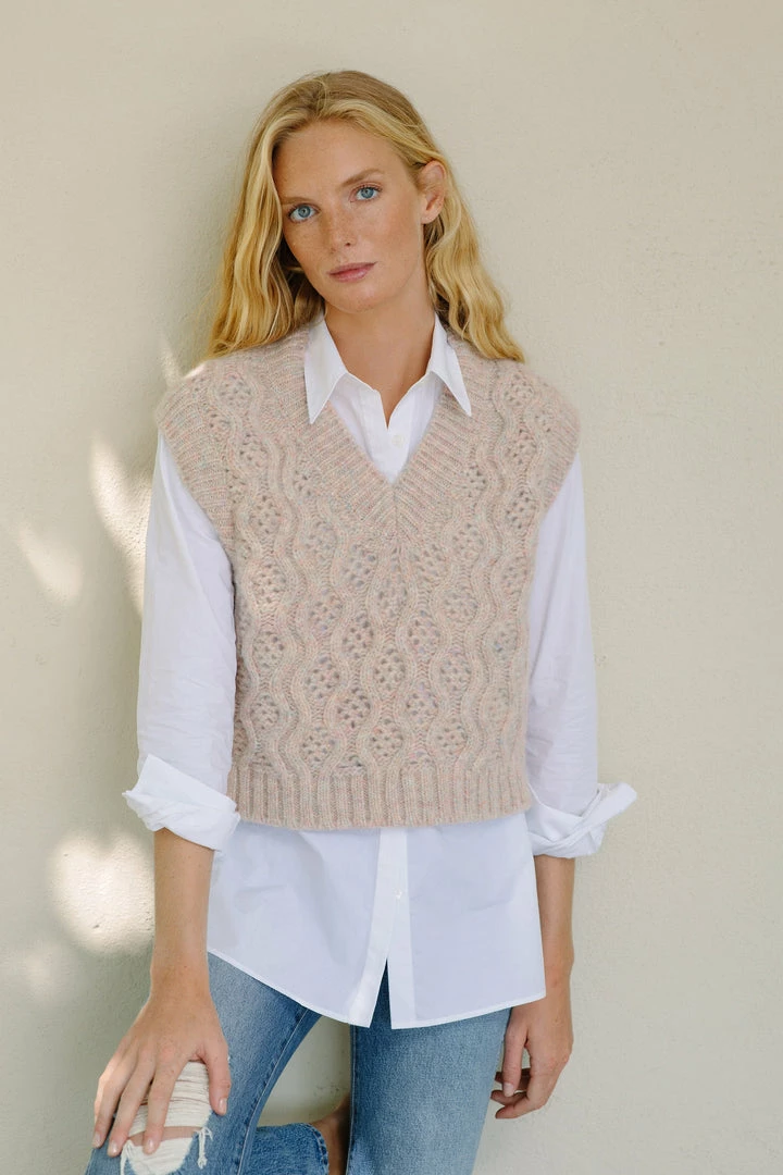 Stay on trend with our new Sarah v-neck sweater vest. This must-have is slightly cropped with cable knit details, and it’s made with an alpaca blend that’s so soft, it’s like ASMR for your fingertips. It’s versatile, too: slip it over your favorite dress or collared shirt for maximum wearability. Â 100% made in Italy.