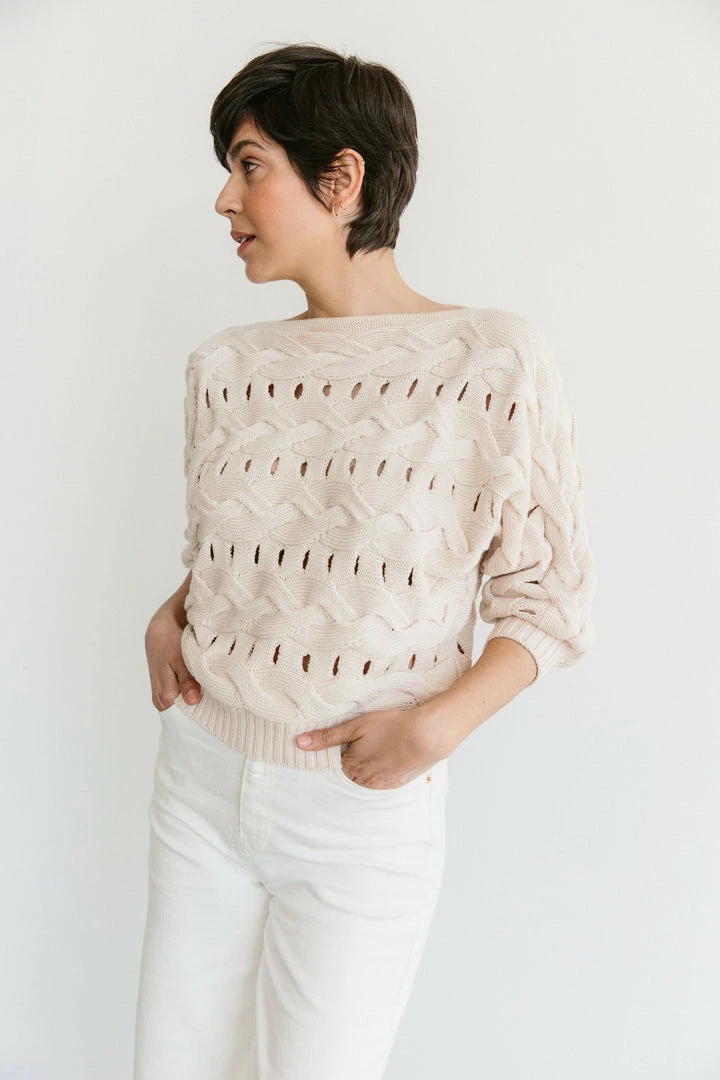 It’s sweater weather year-round when the sweater in question is made of our oh-so-airy and fresh 100% cotton weave. Light enough to look at home by the beach, over swimwear or anywhere you used to think a sweater didn’t belong. Snap her up before she’s gone, she’s limited edition. 100% made in Italy.