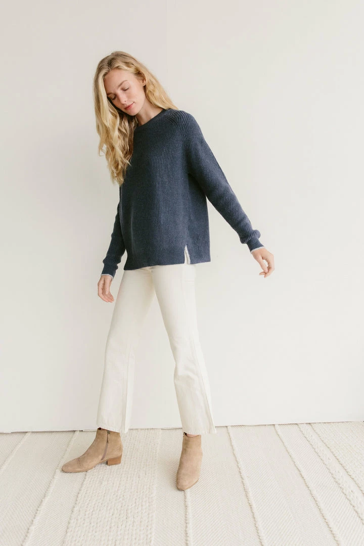 The comfort and ease of your favorite sweatshirt, with the style and softness turned up to 11. The Sage is a year-round, elevated pullover that shares its design details and yarn content with our popular Stephanie Cardigan. Pull it on and get to getting. 100% made in Italy.