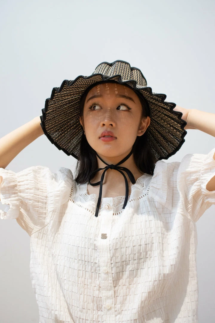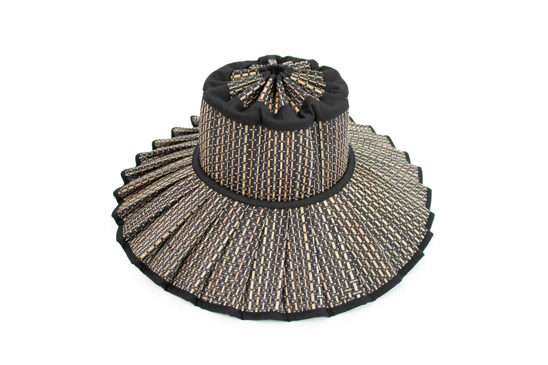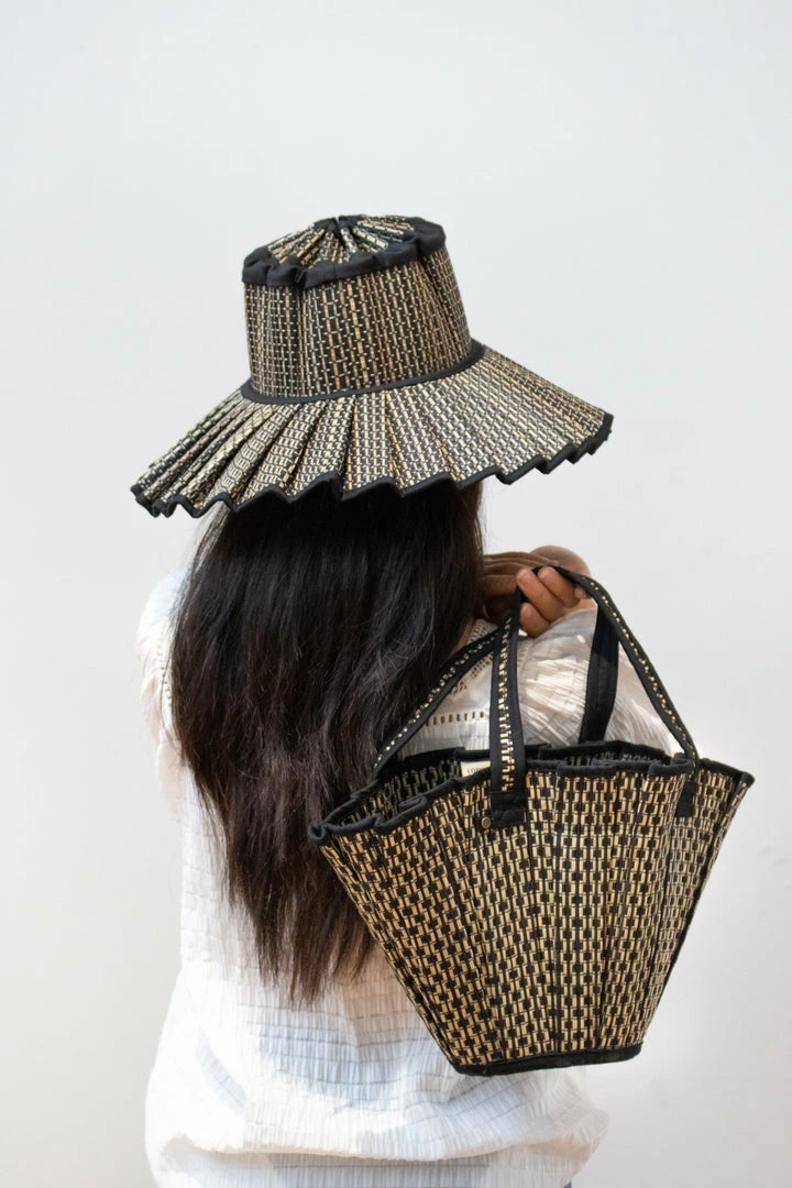 Melbourne features porcelain-white and ink-black alternating thread colours woven through its alternating natural and black hand-dyed fibre base, with ink-black fabric trimming.