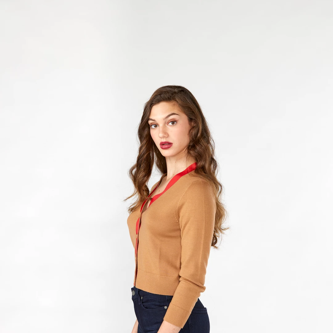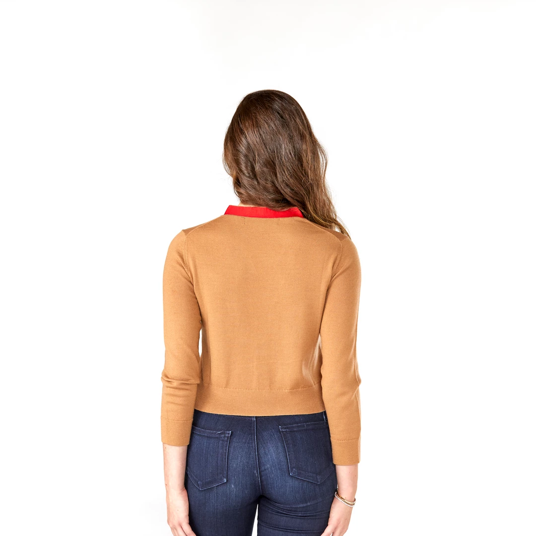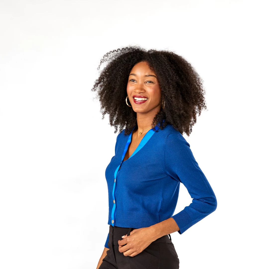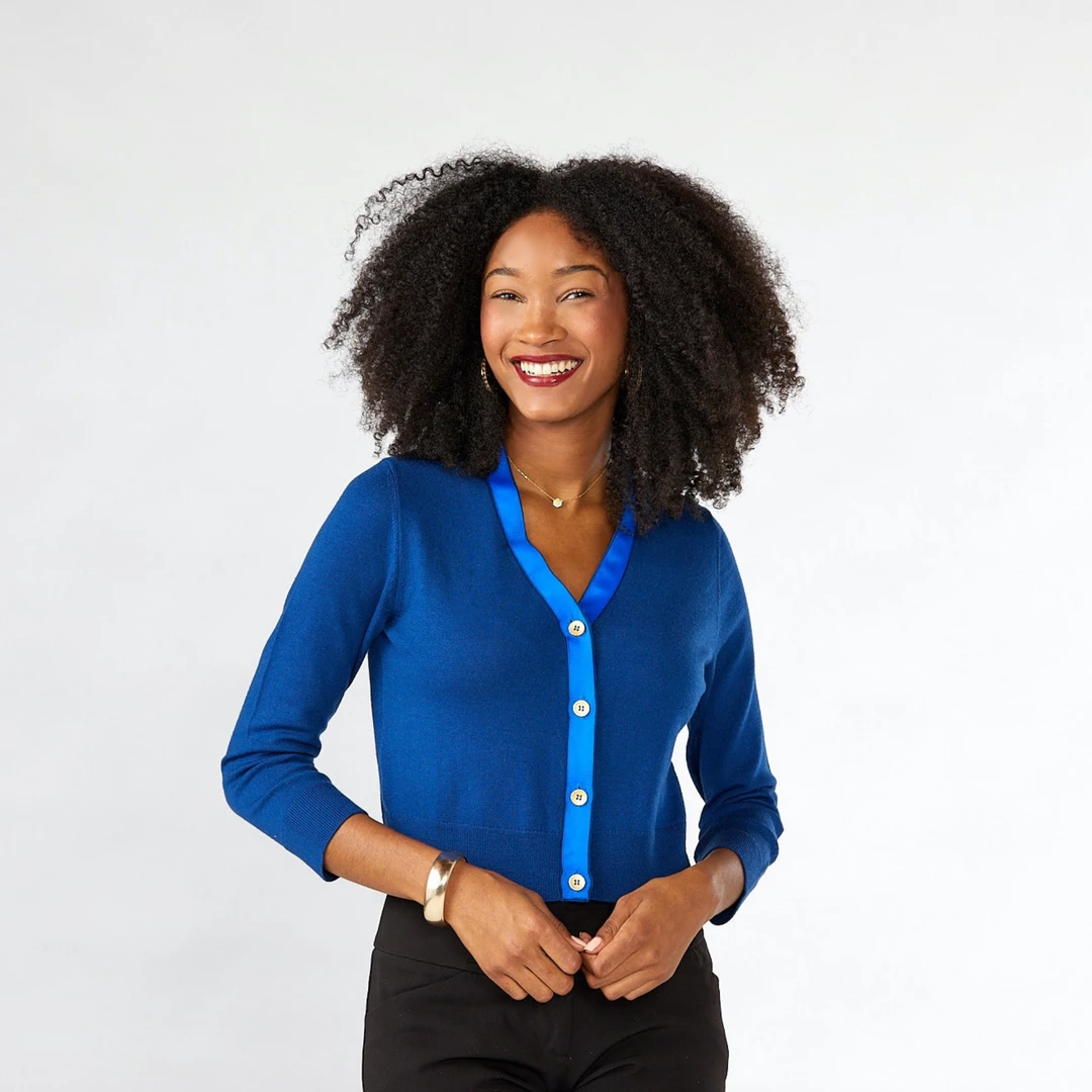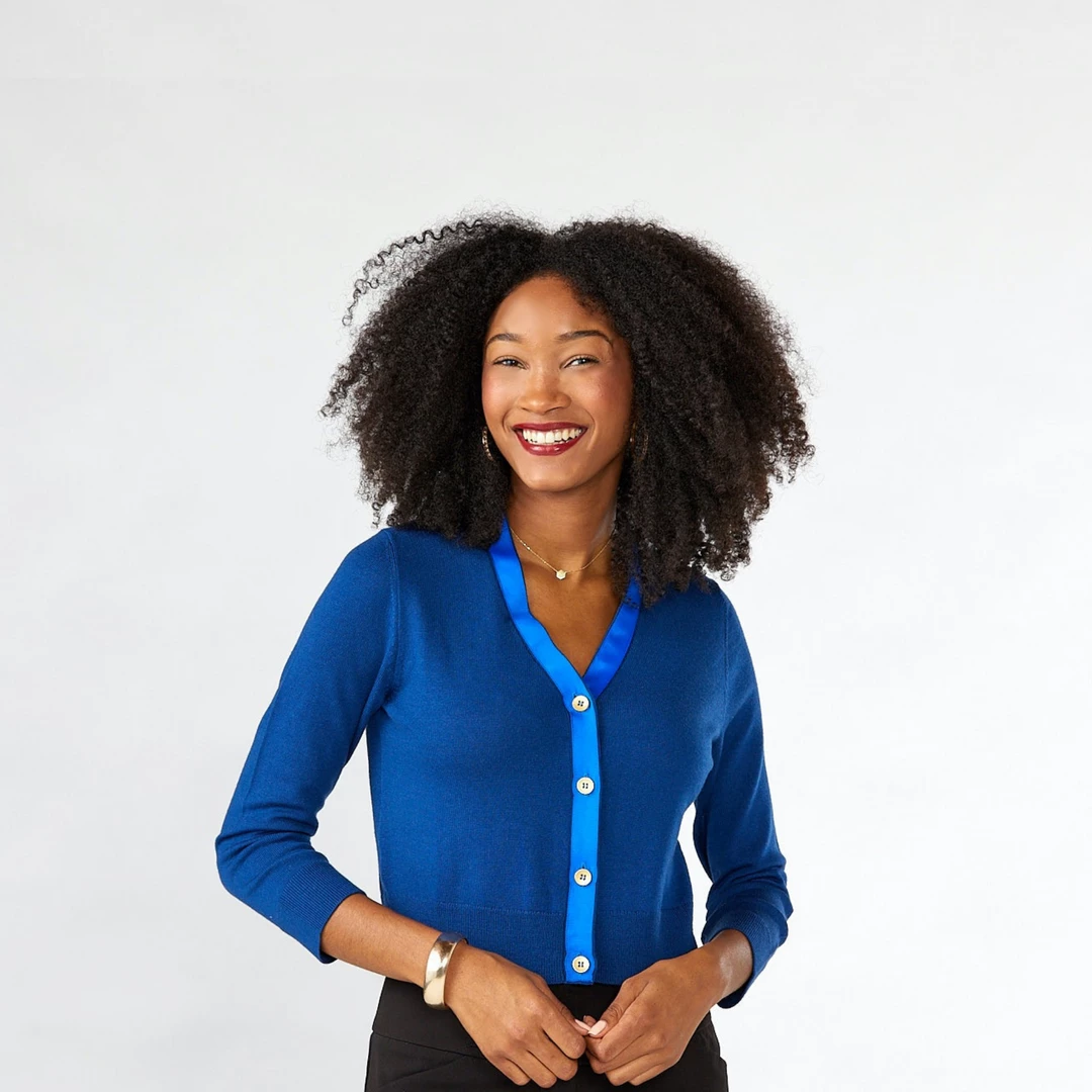 Channel your inner Parisian with our refined cropped cardigan made of 100% fine gauge merino wool, featuring a placket lined with contrast grosgrain ribbon and gold buttons. We love merino wool because it is a lightweight knit worn year-round and it feels like butter. Our merino doesn’t itch or pill and keeps its shape beautifully. Throw on the Chloe by itself with a killer pair of jeans or use it as the perfect outfit polish. Beauty is in the details and this cardigan has you covered.