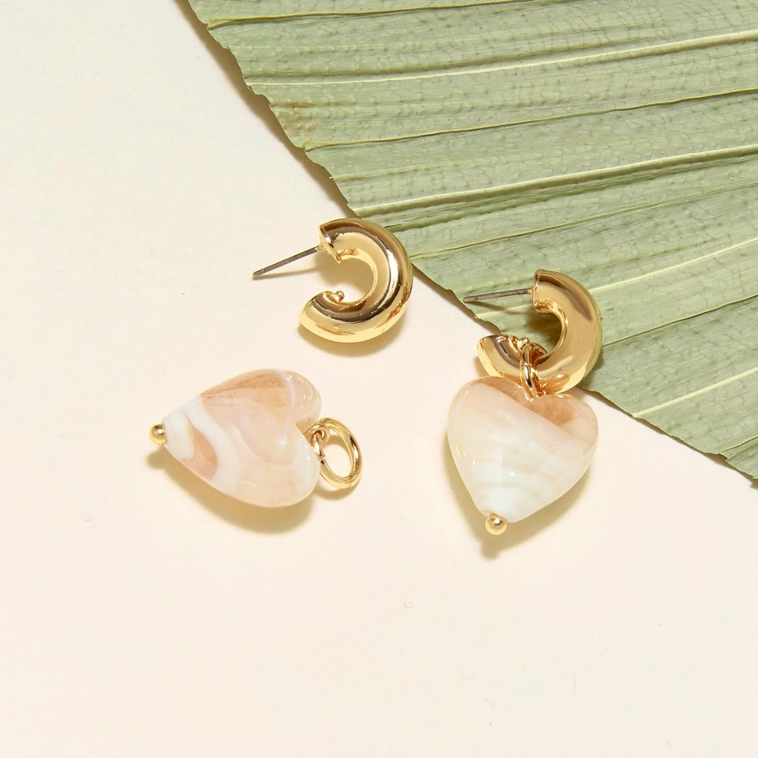 We have major heart eyes for these swirled glass hoops. Featuring removable heart charms should you decide to wear these hoops a little sleeker, these effortless drops pair back to all your layering essentials. (Oh and just the right gift for Valentine’s Day or Mother’s day too).