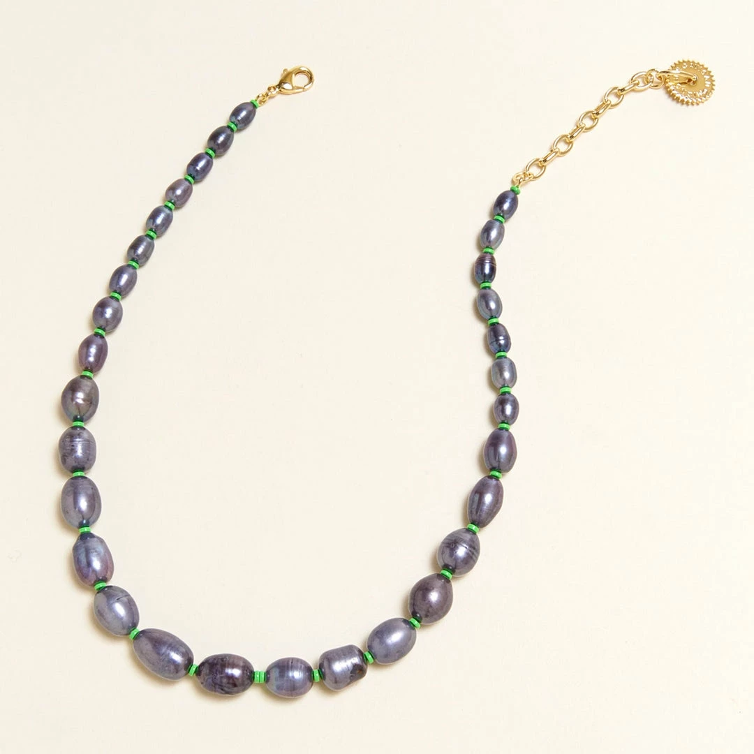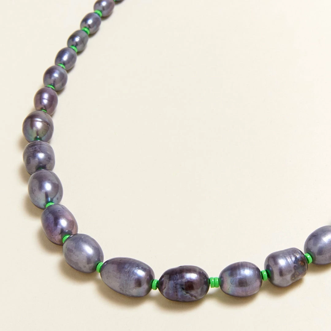 Mignonne Gavigan Maj Pearl Necklace Green Grey