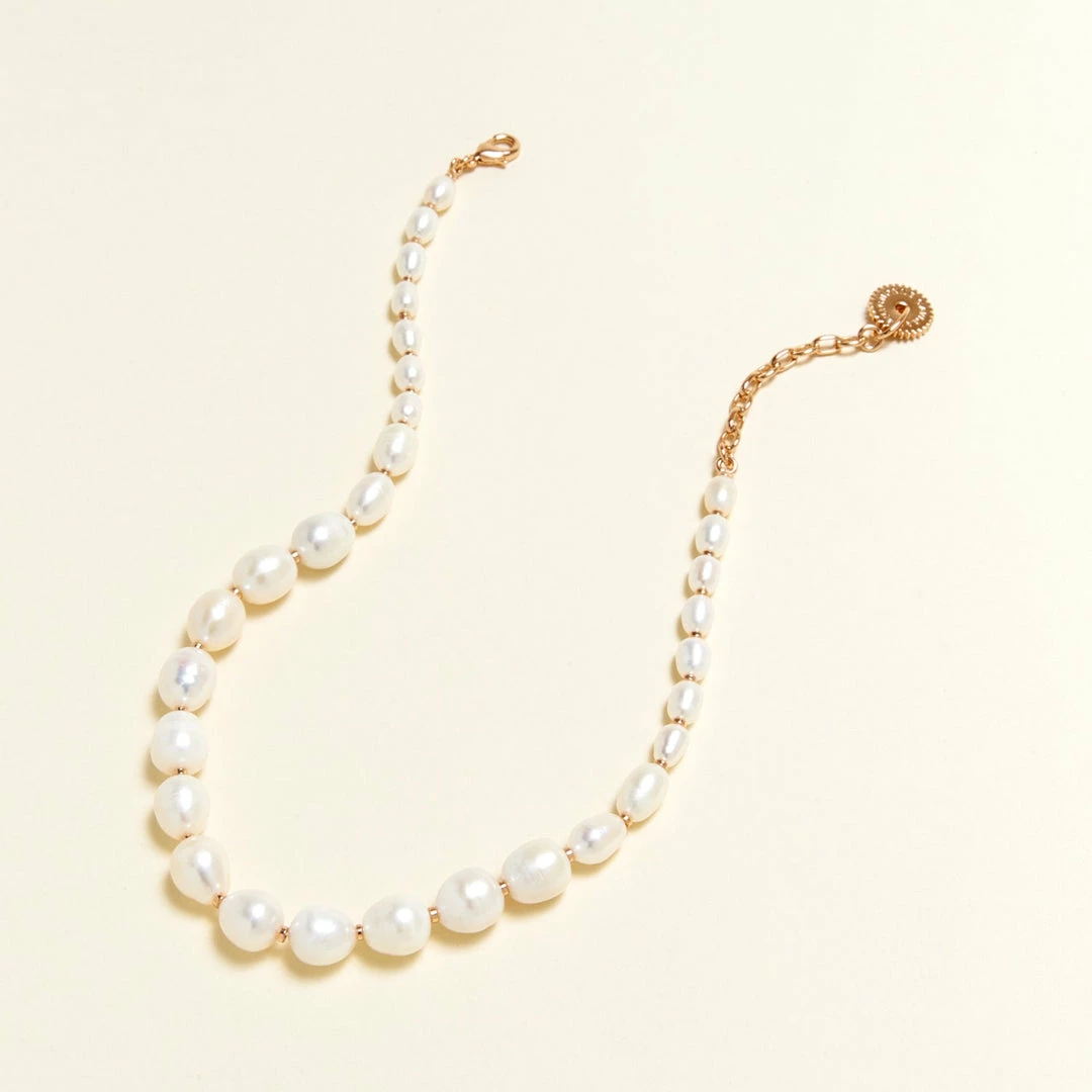 Elevate your everyday wardrobe with a reborn classic. Freshwater pearls interspersed with rose gold beads make for a playful summery essential. We love this styled with our summery Kai necklace Malia styles and your favorite printed swimwear.
