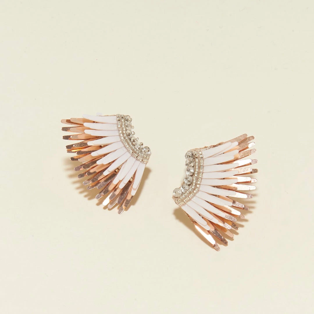 With layers of beading and thoughtfully placed winged sequins, these earrings are everyone’s favorites. A signature style and often people’s first MG earring. The eye-catching metallics are feminine, romantic, and timeless. Handmade with sequins and beading, these have all the allure of our signature Madelines in a mini silhouette.