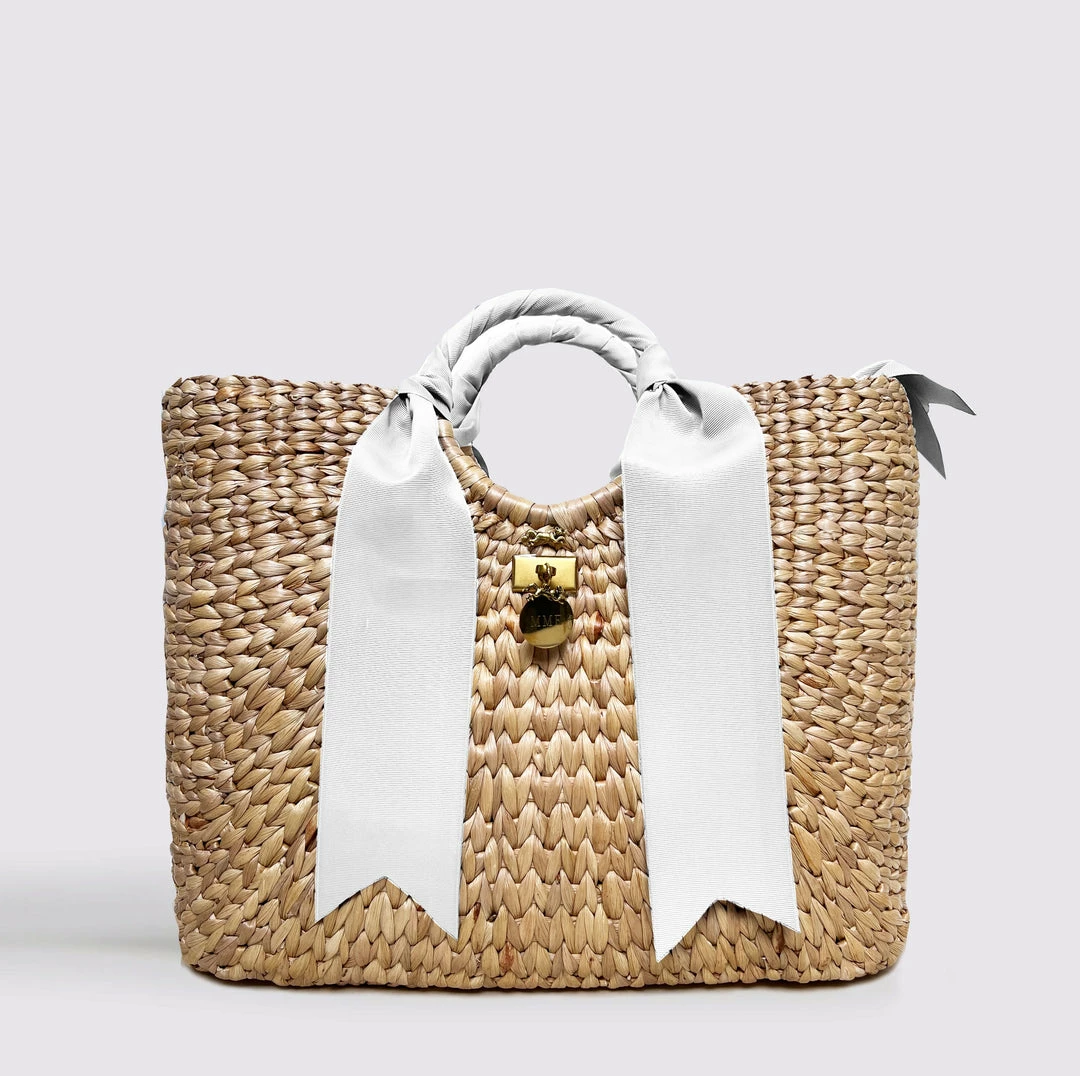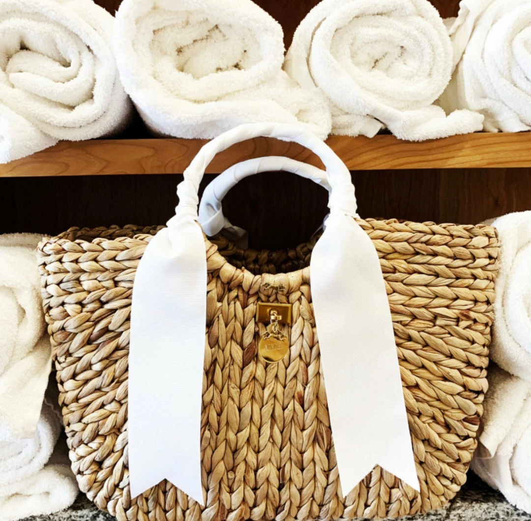 Our HIGHLY Coveted BENTLEY Tote is the Grand Dame of our woven Collection. This tote is the largest of our basket totes. Made from organic grass fibers woven and strung as per MME.MINK design, this beautiful handbag is made in limited quantities for the Season. Our signature hardware and ribbon details make the tote distinctive and special. Each bag is hand-numbered with our authenticity label and treated with our white-glove handling to make each piece a very special experience.