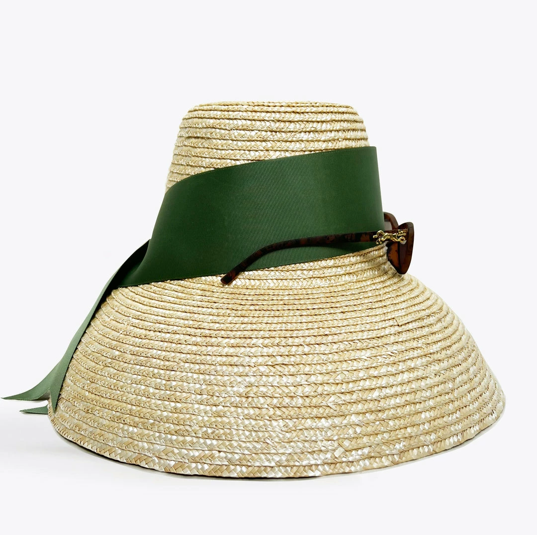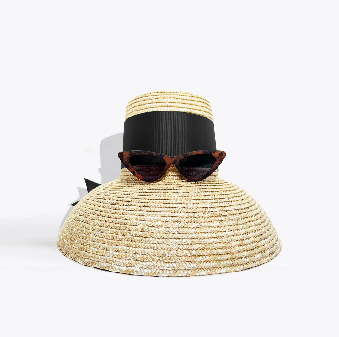 **Limited Edition** Introducing The ‘GIGI’ – our perfectly simple and gorgeous Spring/Summer Hat – the “be-all-end-all” to complete your Spring/Summer look! This hat is perfect for aprés pool, Avant- pool, and anything in between. Also very flattering with our Poolside/Country Club Dresses or with our Summer Dip Suits! Perfectly adorned with ribbon and our stylish GIGI sunglasses.