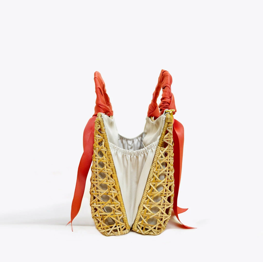 - MATERIAL: Organic Woven Wicker Tote with twill lined interior.Â