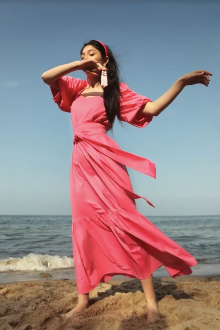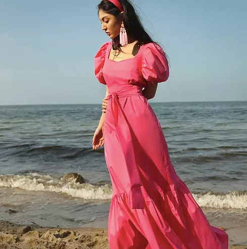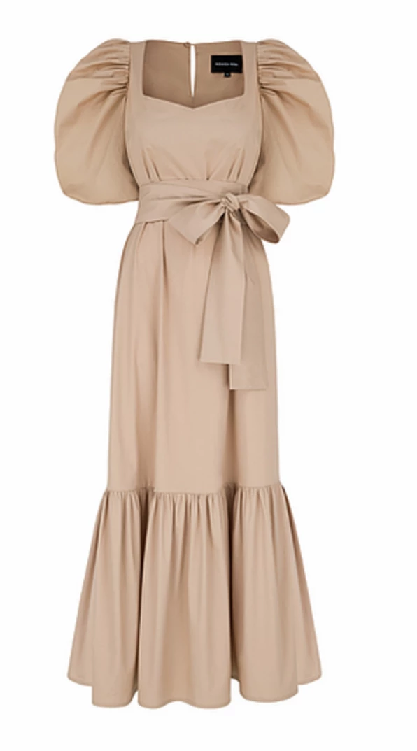 Inspired by the timeless silhouettes of the nineteenth-century, Jasmine is a stunningly elegant maxi-dress made from our best quality cotton. Short, puffed sleeves and a square neckline create a characteristic a Georgian feel, while the ruffle effects give a modern twist. The dress is finished with an optional fitted waistband with a bow detail that can add extra shape, and a chic single-button fastening at the nape of the neck.