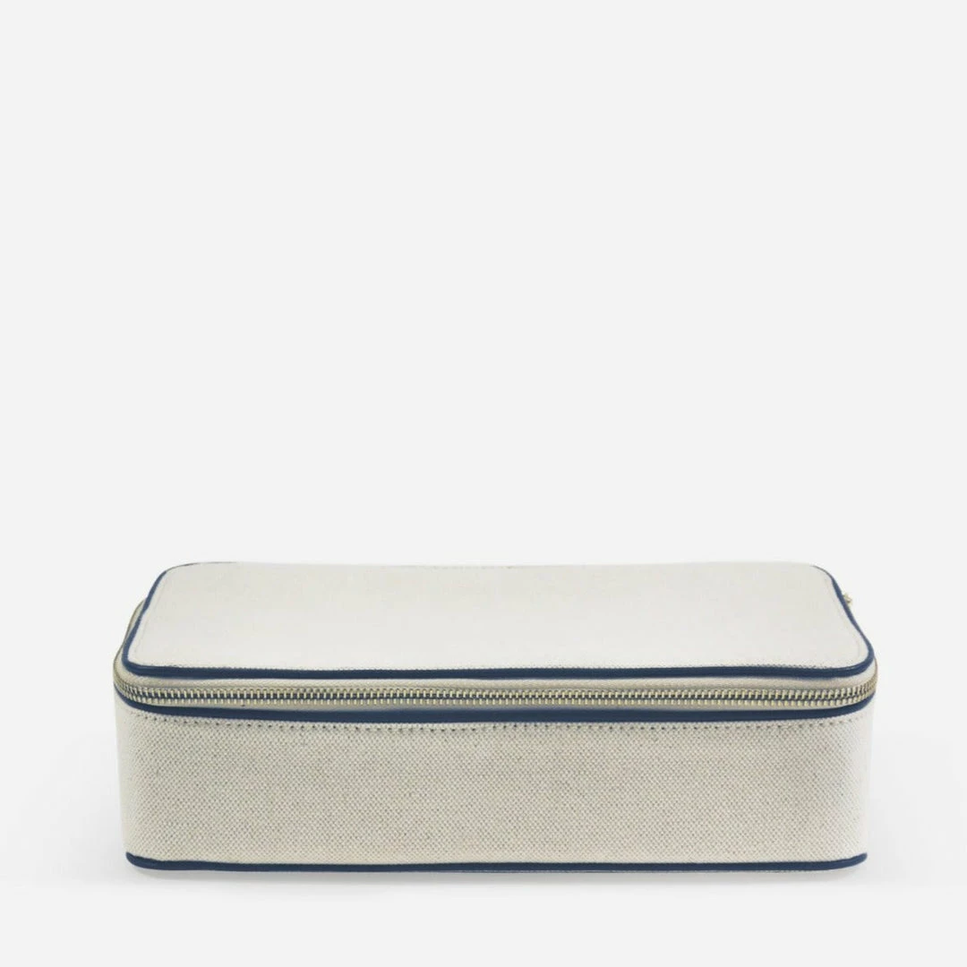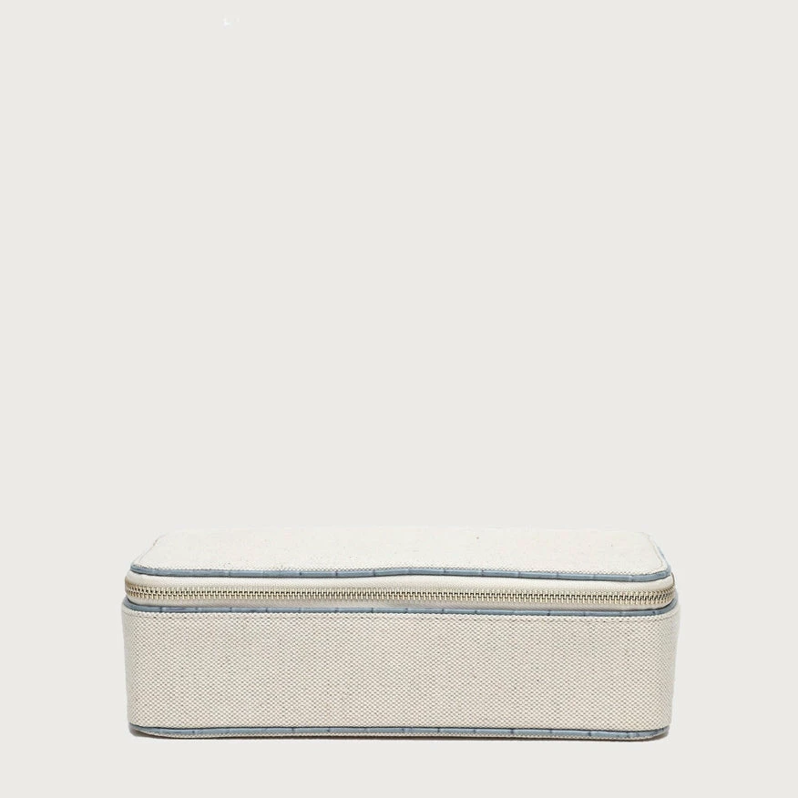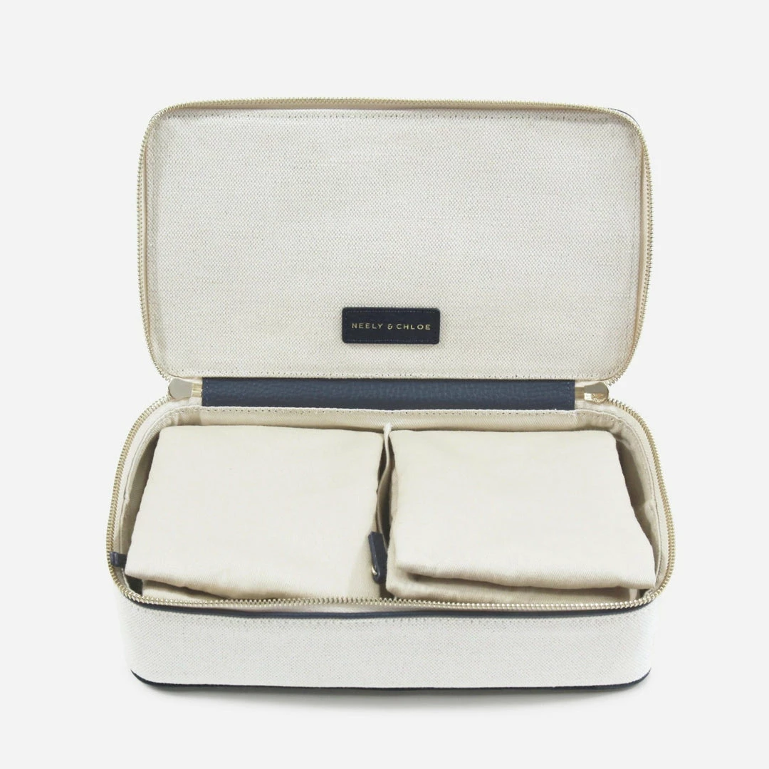 Meet the Jewelry Case- your perfect partner in crime for weekend getaways and vacations alike. Fabricated in our durable (and cleanable!) natural canvas and finished with a leather trim, the Jewelry Case is as pretty as it is functional. Complete with 8 zip pouches inside, there’s room for all your baubles. The padded pouches will keep each piece from scratching and protect your more delicate pieces. Packing just got more fun!