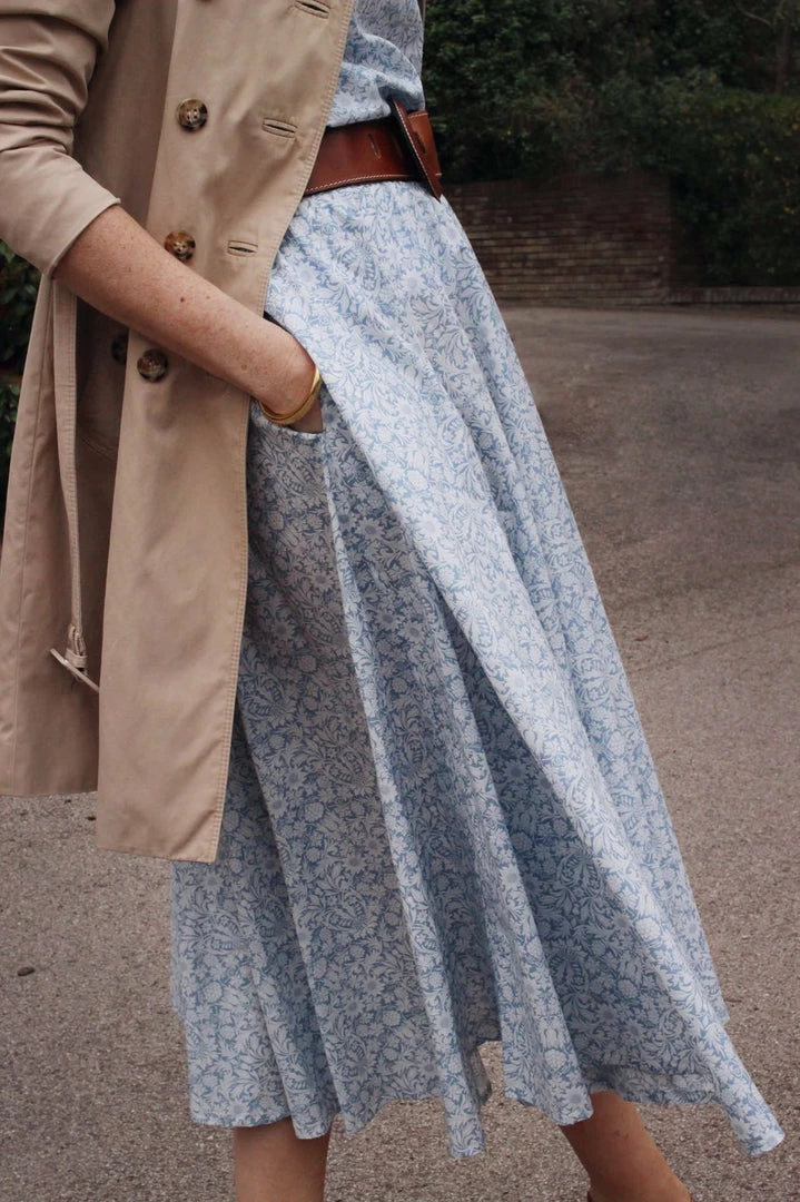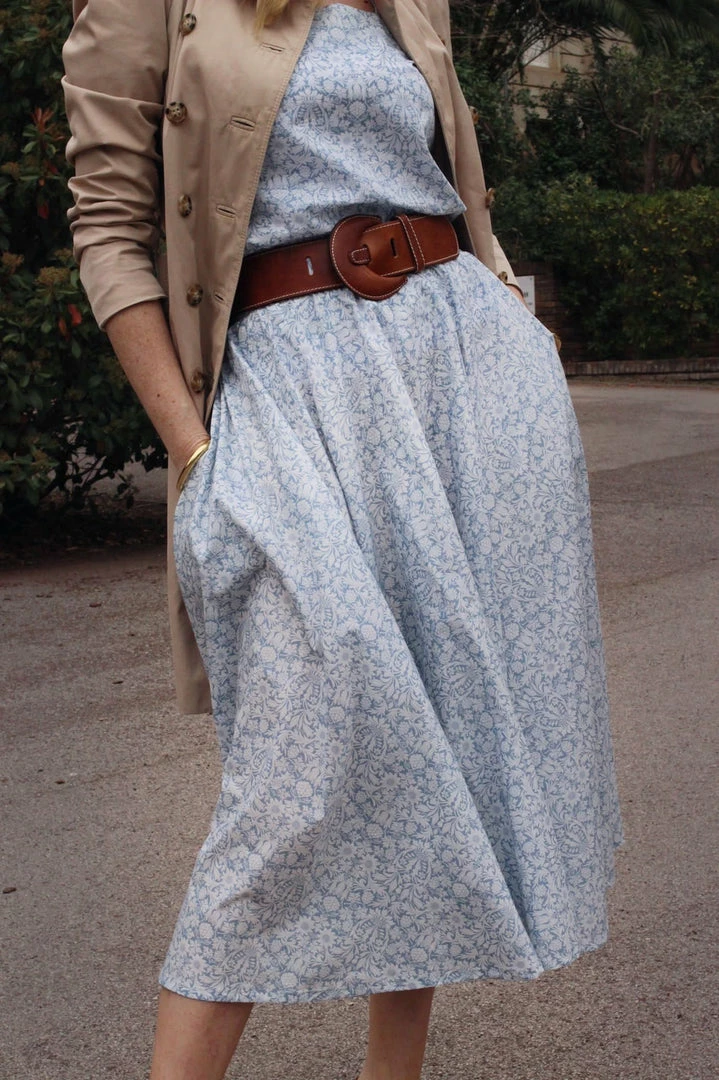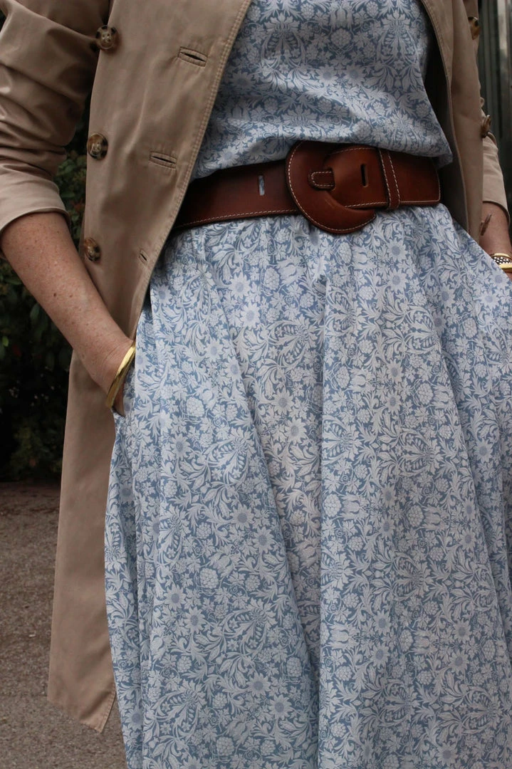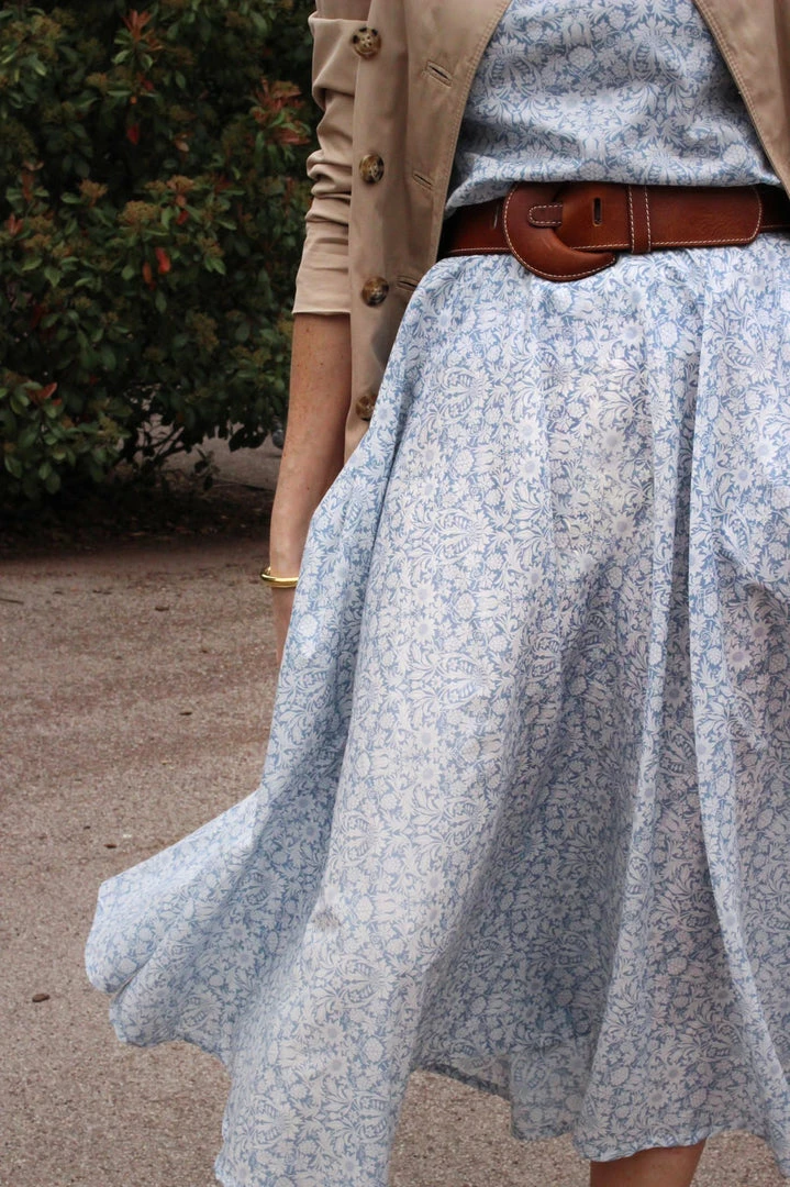 The Kelly skirt is handmade in our atelier with an amazing Liberty London baby blue fabric.