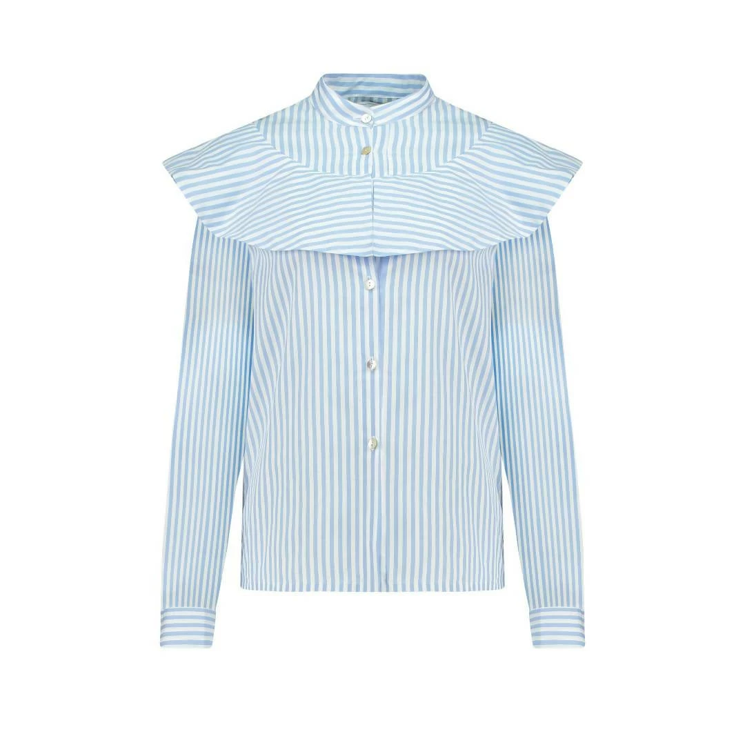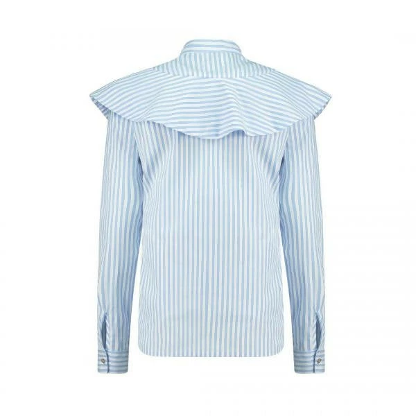 The Mia blouse is handmade in our workshop with European production cotton in a light blue and white stripe print. Elegant & timeless piece.