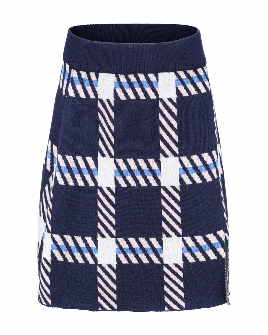 Merino Wool Skirt in Multi Moon Walk Jacquard Blue.