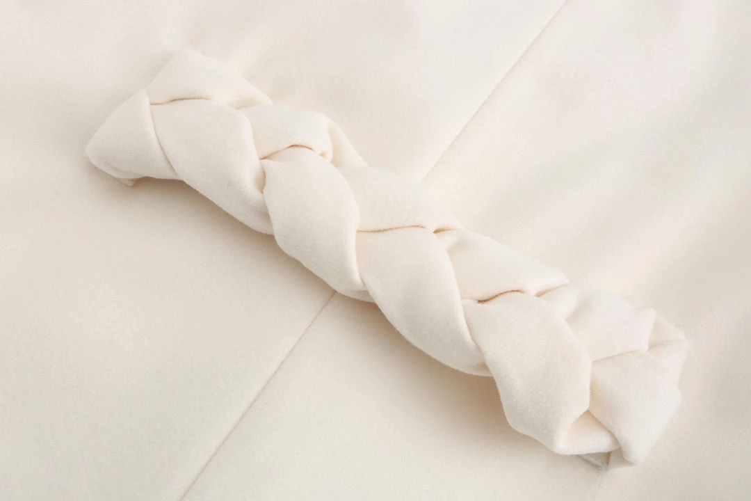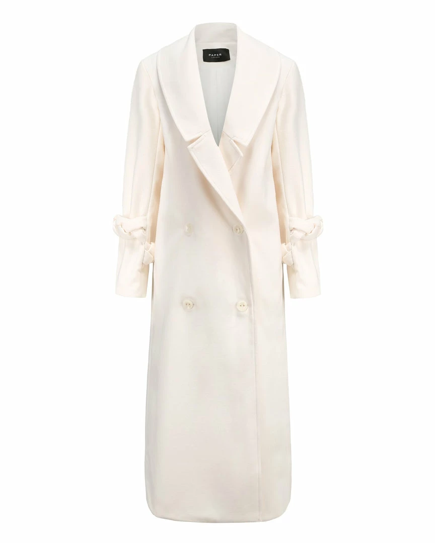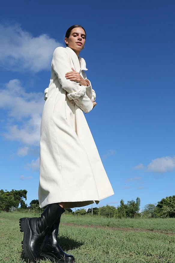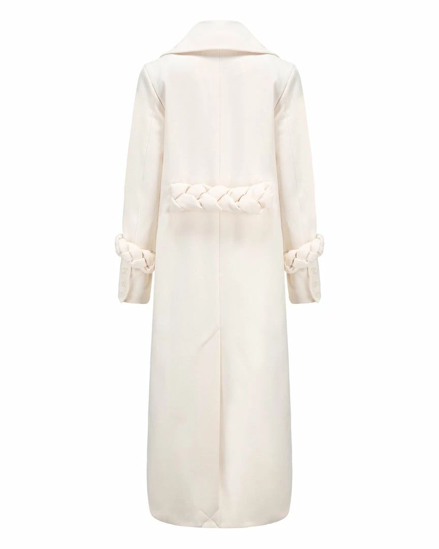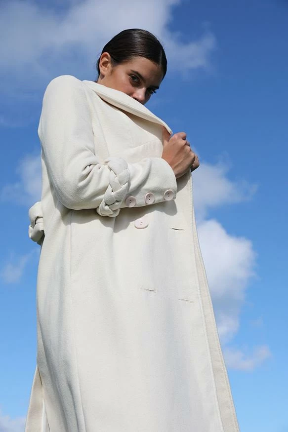 The best-selling full-length Rainbow Coat gets an update in stunning ivory this winter. The coat has braiding detail on the sleeves and back.Â