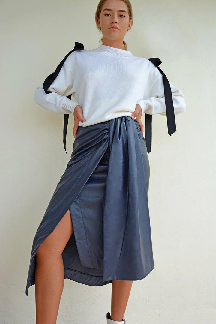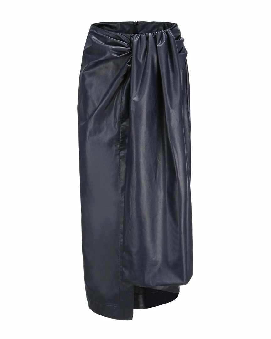 Maxi skirt with pleat fold detail just off centre down the middle in fabulous, soft pleather.Â