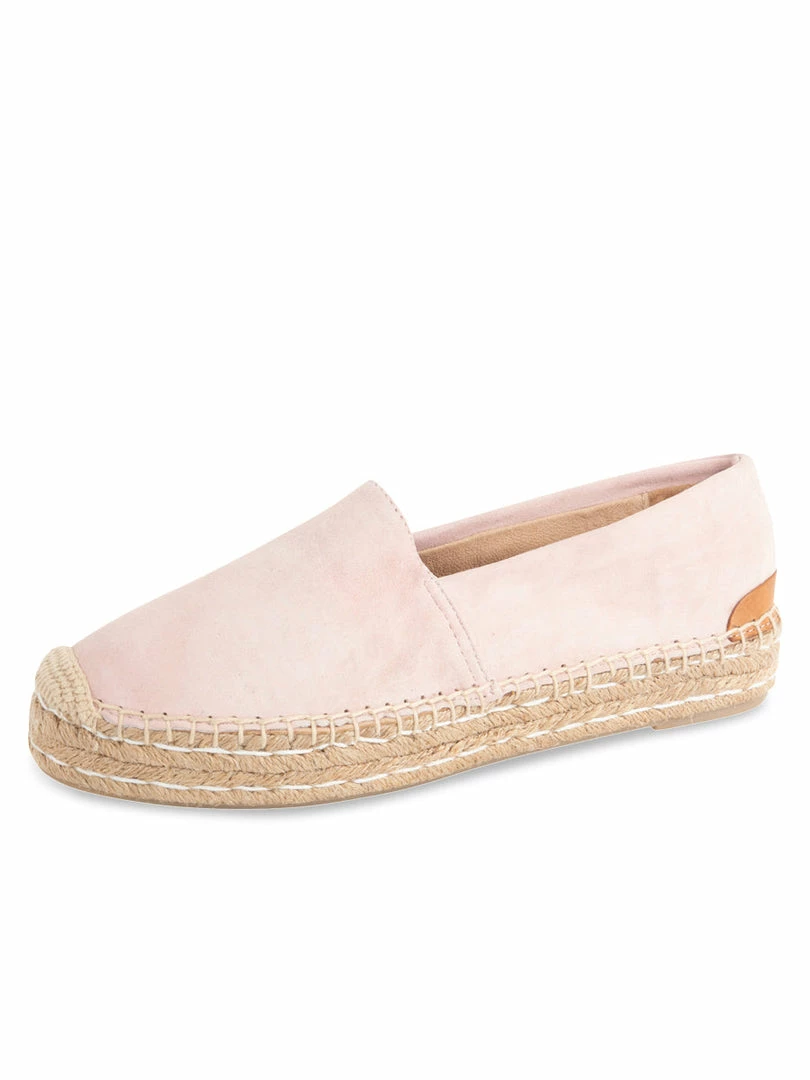 Suede platform espadrille loafer with hand stitch detail on jute. A best-selling style that is so easy to slip on and off. Ultra comfortable for all day wear.Â