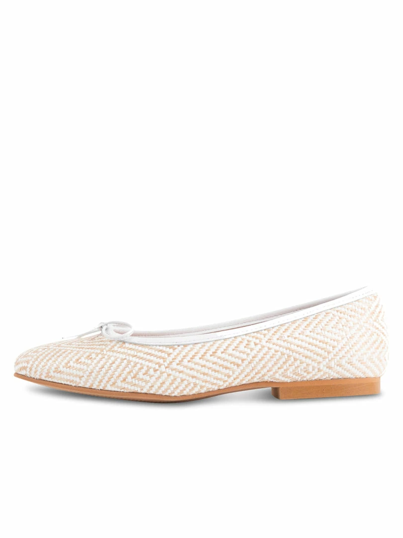 A classic skimmer ballet flat with almond toe and finished with a delicate bow.