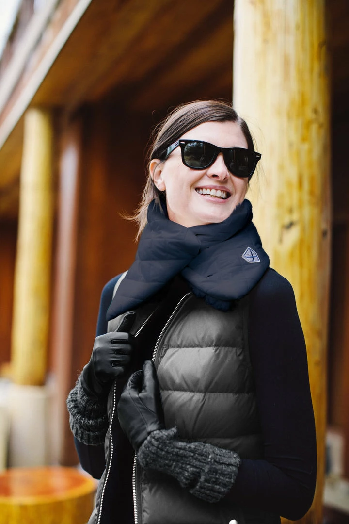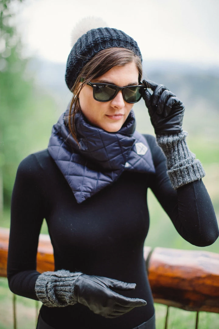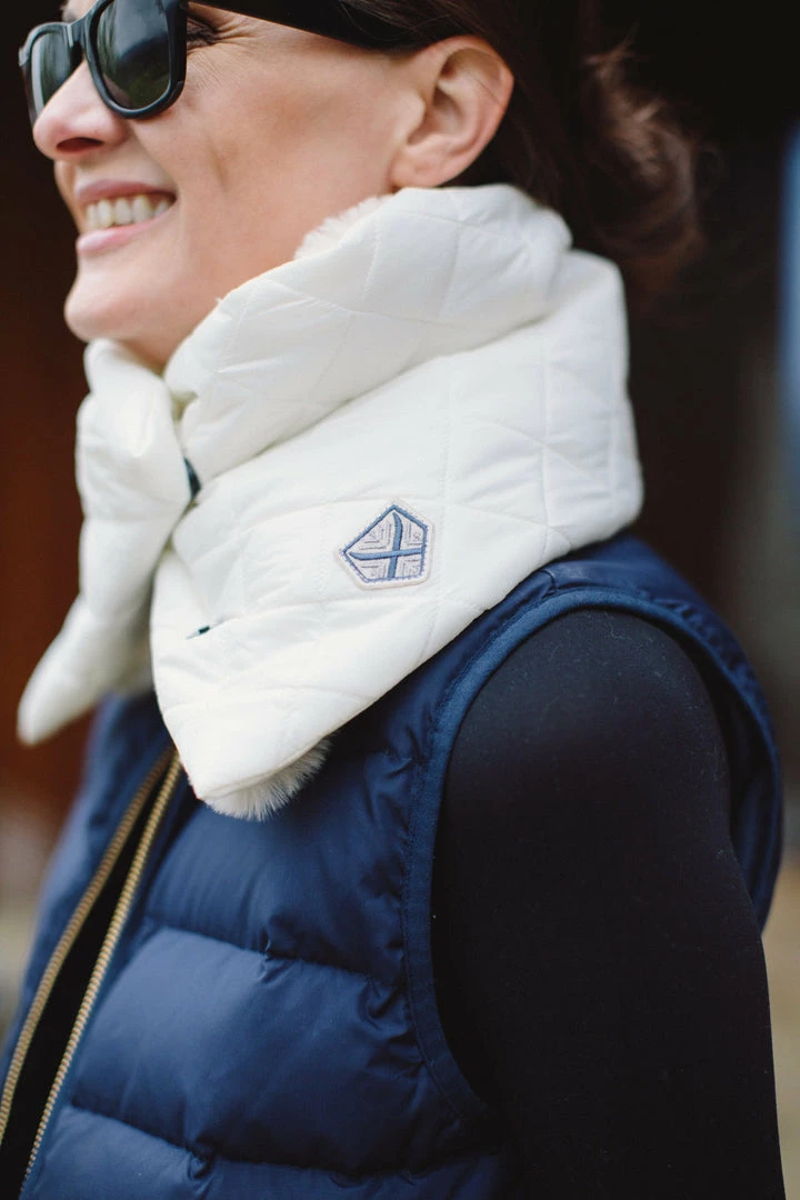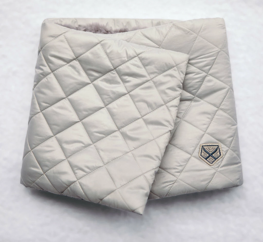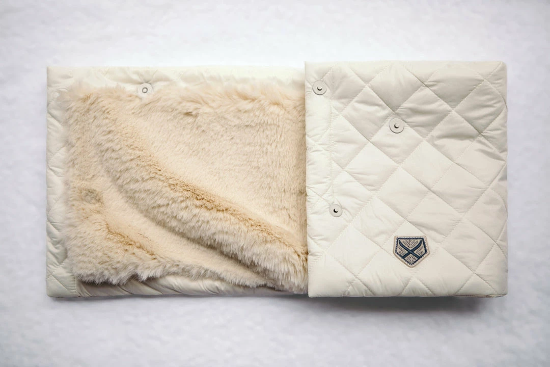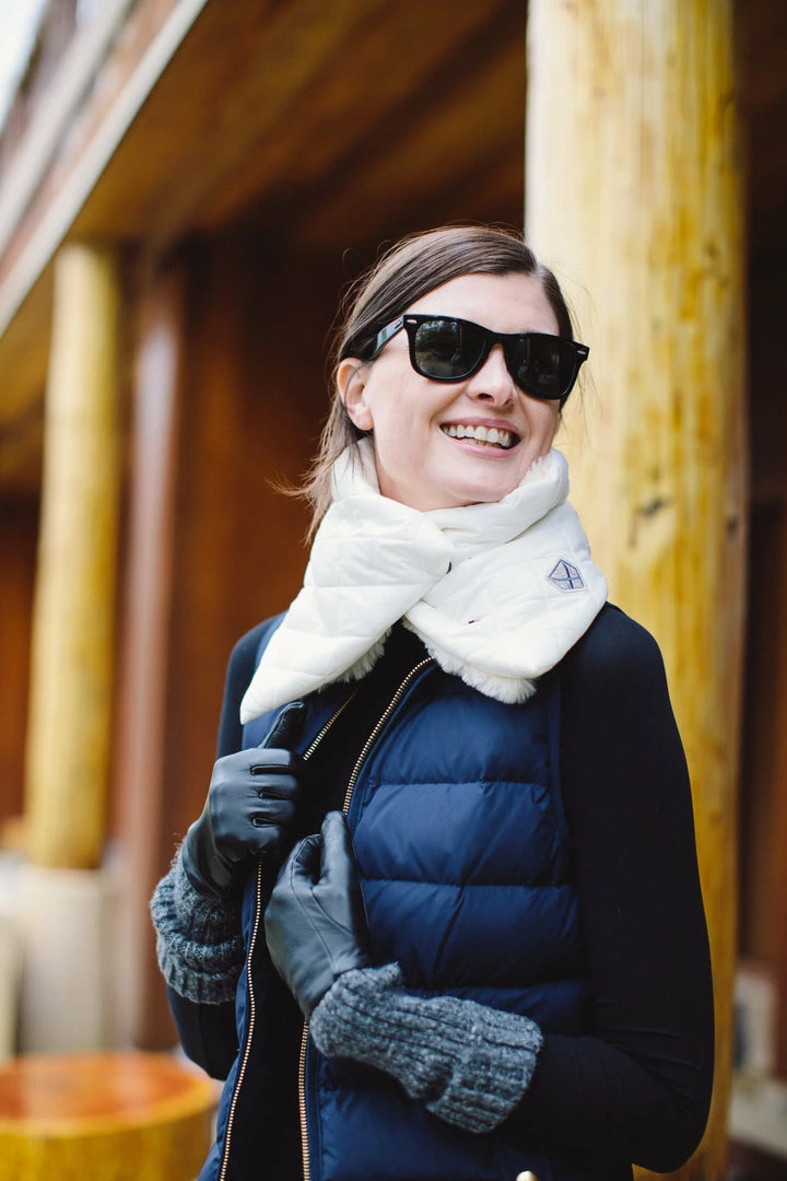 The fur wrap style is for the fashion girl who wants to style warm but add a bit of luxe chicness to her look. This style wraps and snaps in the front. It is made from recycled quilted nylon and lined in recycled faux fur.