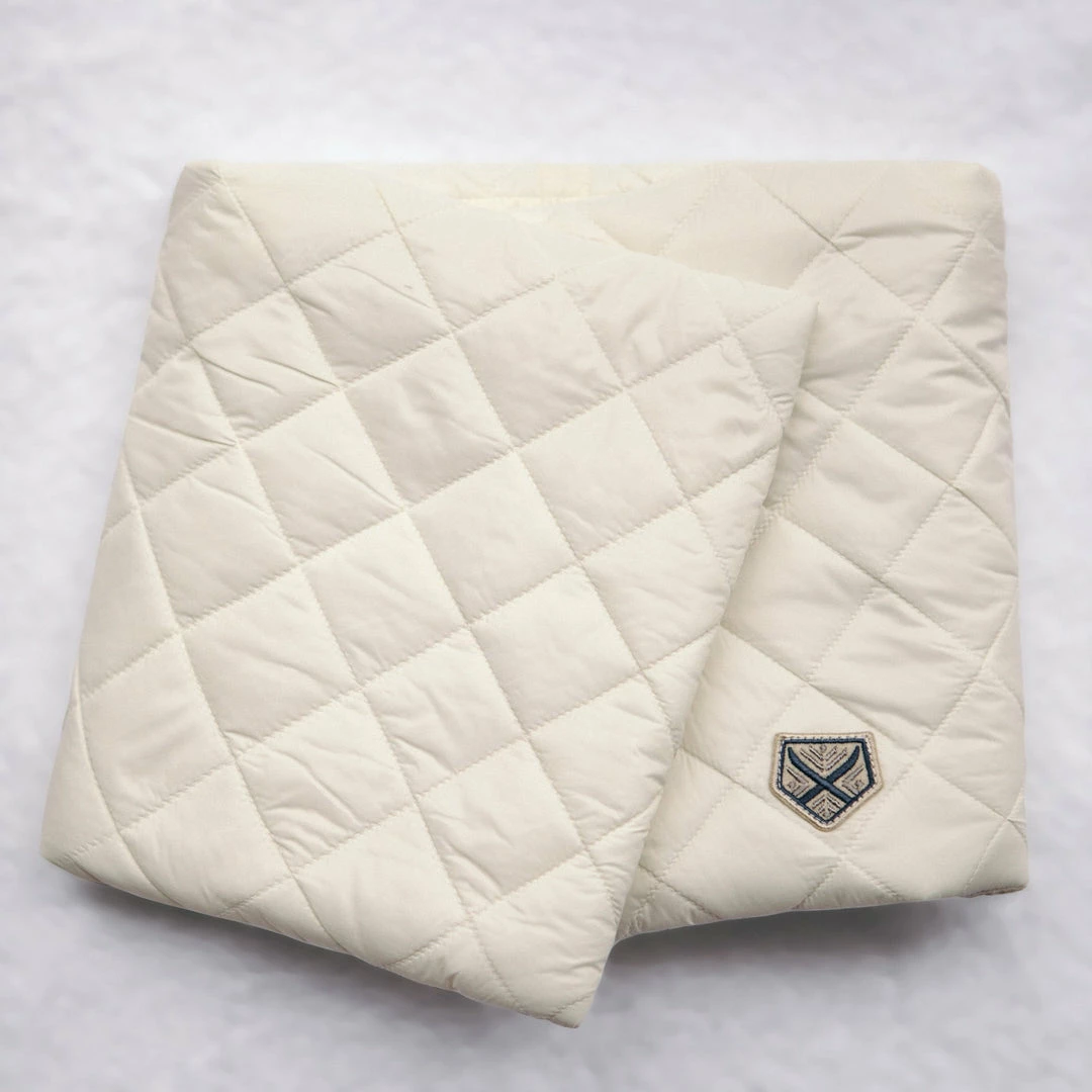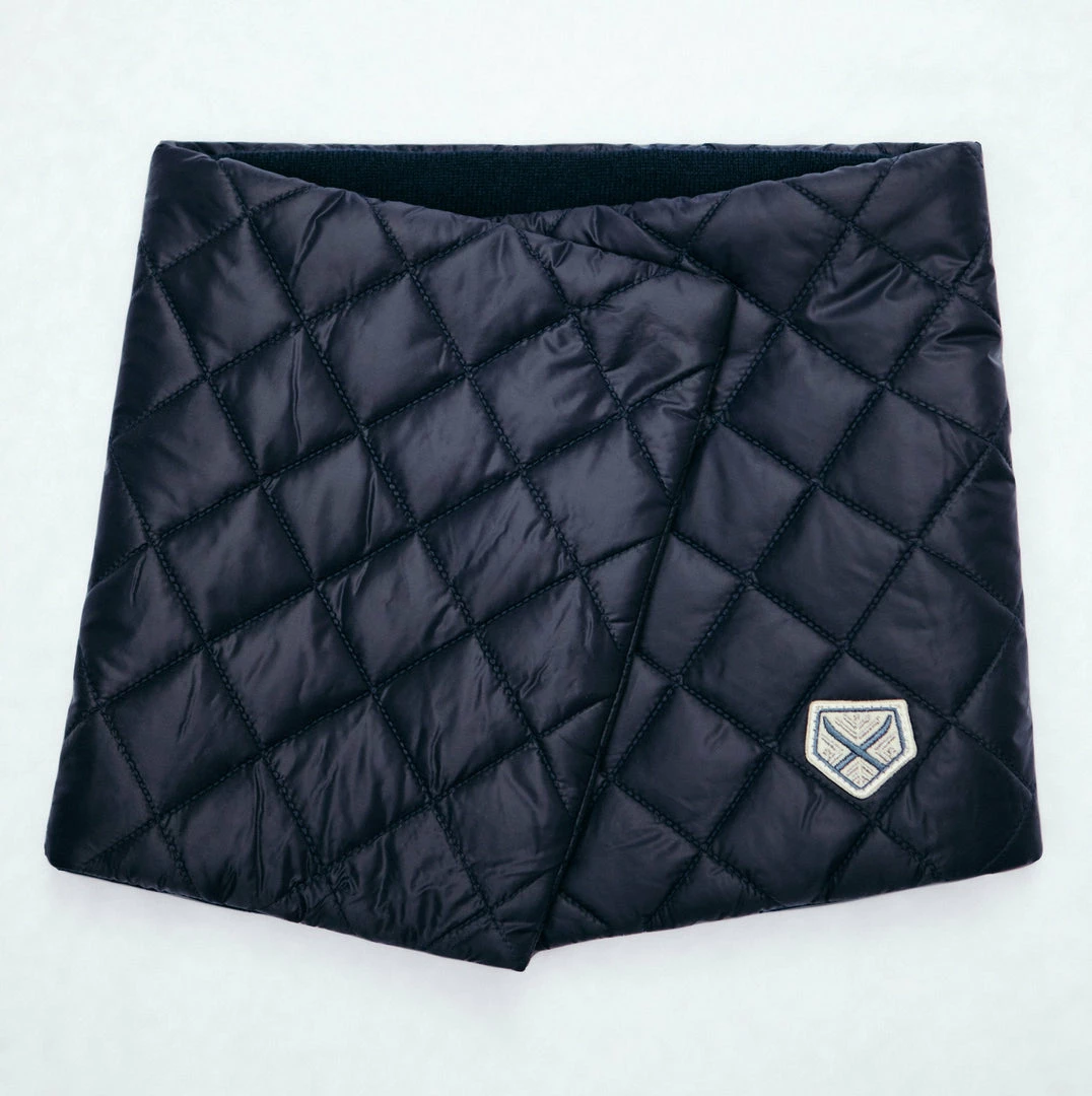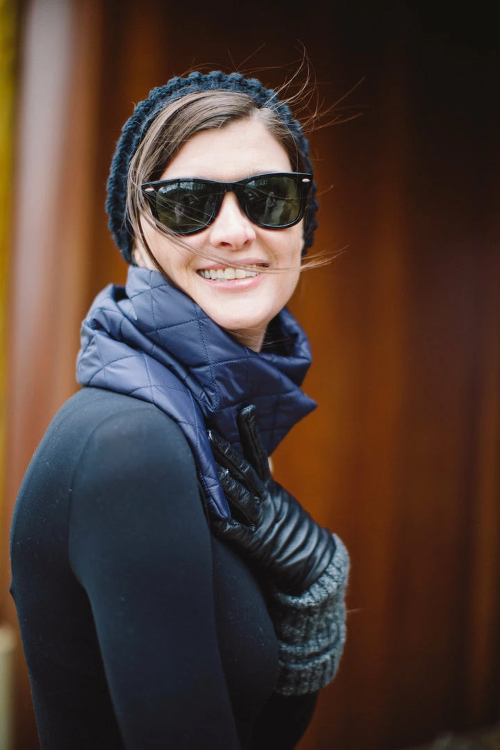The wrap style is perfect for a cold winter day in the city or the country. This style wraps and snaps in the front so it’s easy to take on and off. Made from diamond quilted recycled nylon to keep out the elements and Primaloft® gold insulation to keep in the heat, it’s lined in our beautiful sustainable cashmere that is so soft and warm next to your skin. Each color is lined in navy cashmere with our signature powder blue stripe.