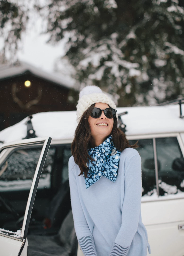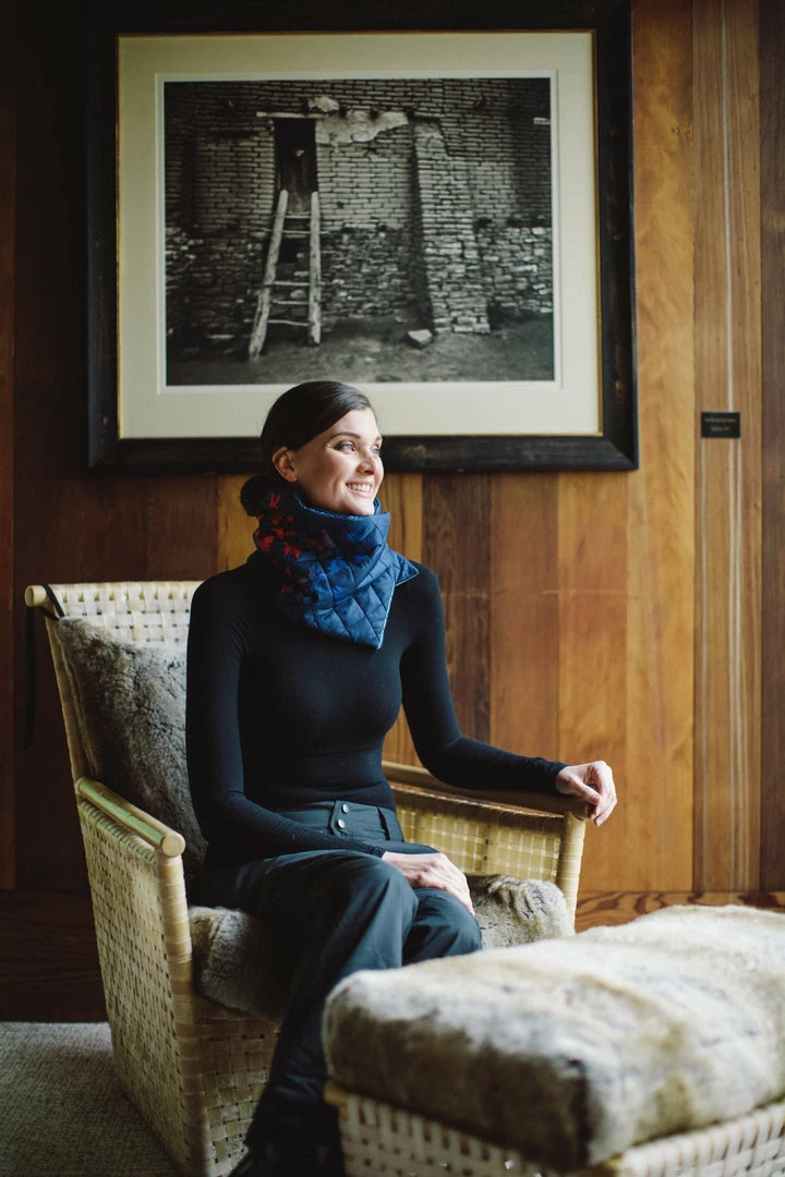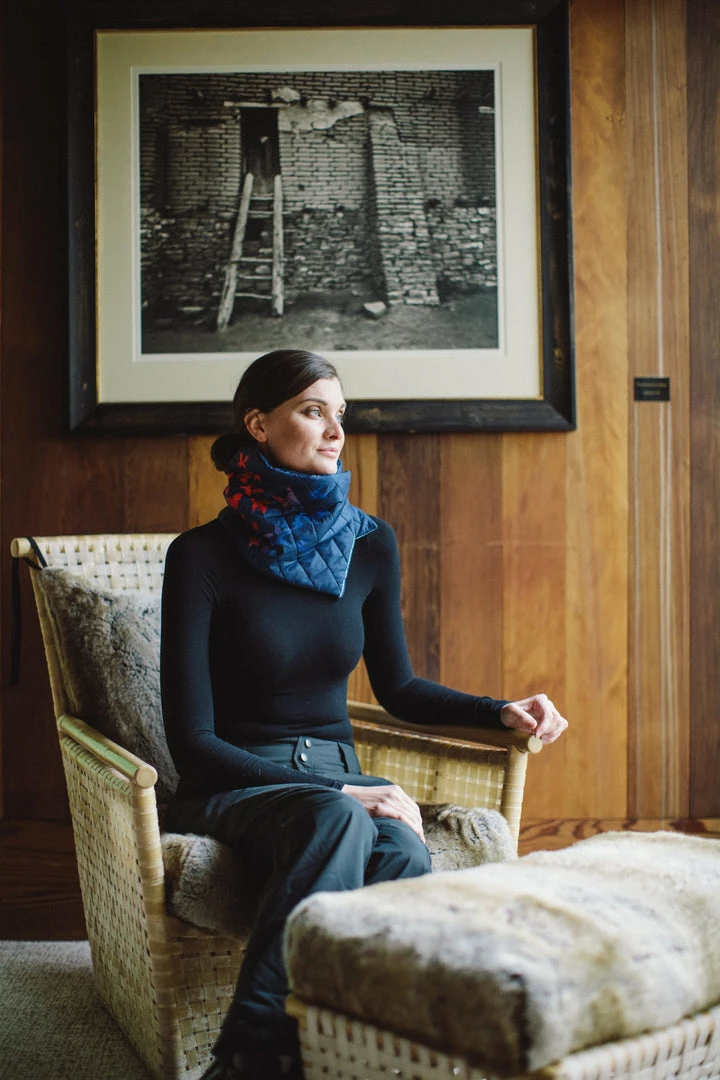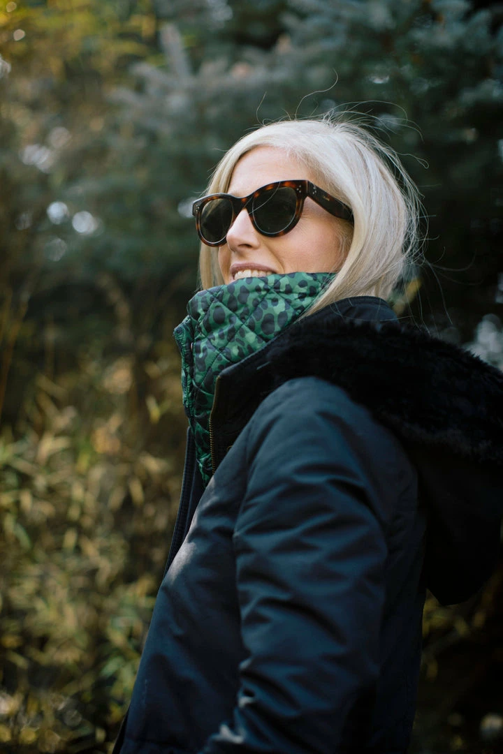 The wrap style is perfect for a cold winter day in the city or the country. This style wraps and snaps in the front so it’s easy to take on and off. Made from diamond quilted recycled nylon to keep out the elements and Primaloft® gold insulation to keep in the heat, it’s lined in our beautiful sustainable cashmere that is so soft and warm next to your skin. Each color is lined in navy cashmere with our signature powder blue stripe.