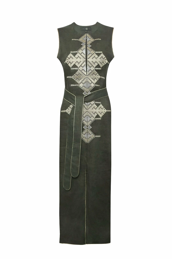 A timeless classic, the Aftab Dress is a straight-cut lightweight summer staple. Wear it like a kaftan or belted to cinch your waistline. Featuring gold and silver thread Balouch embroidery and gold trim, as well as a center midi slit for added comfort. Wear this piece all summer long with scrappy sandals or dress up with metallic heels.